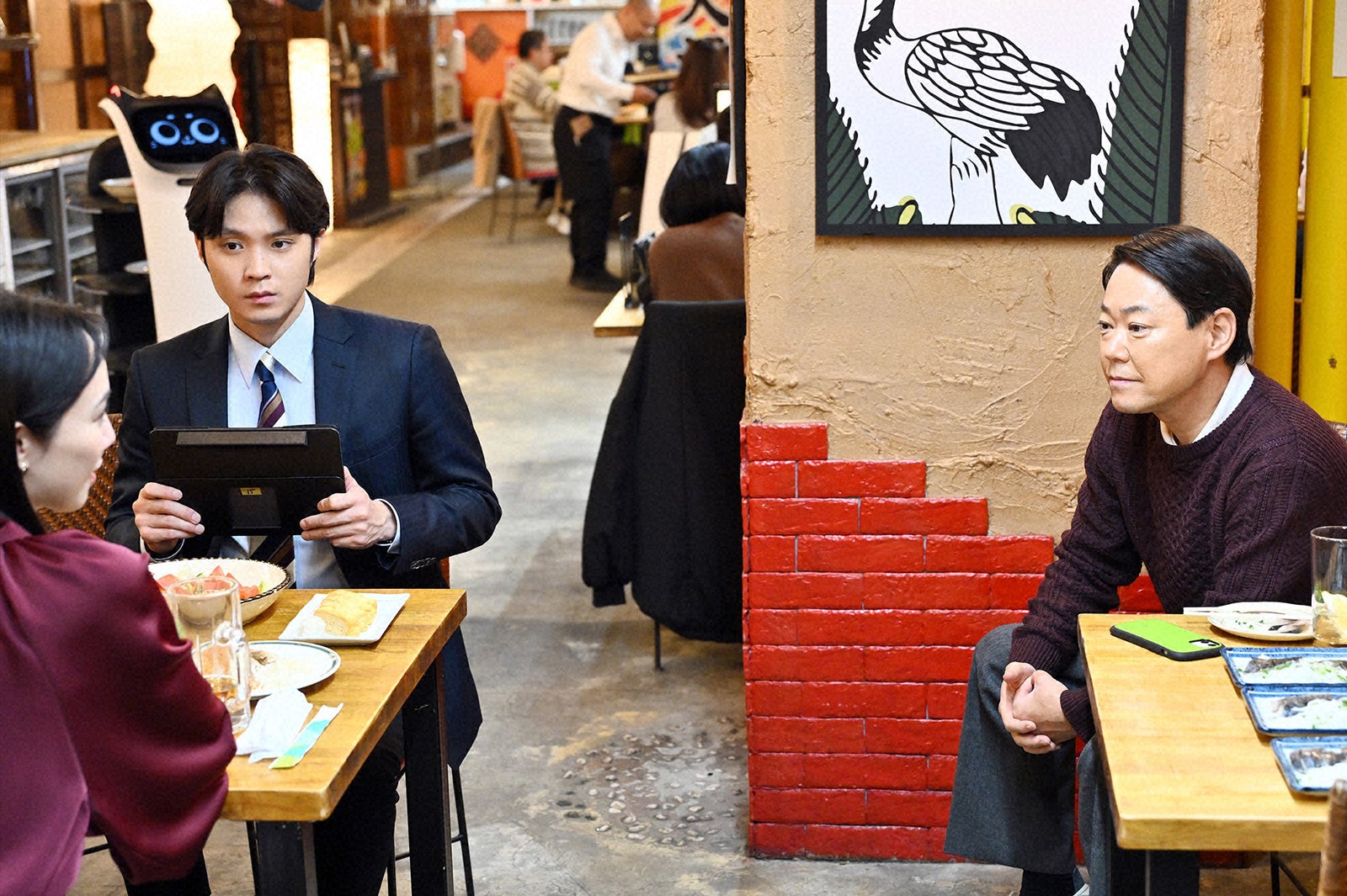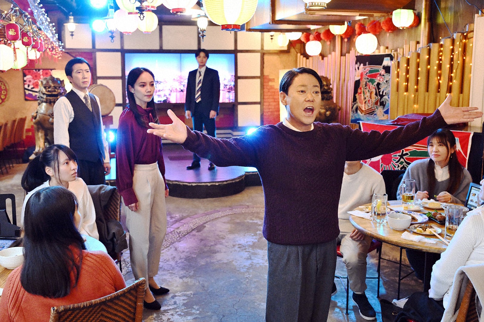 市郎はタイムスリップ先の令和で、ゆとり世代の会社員・秋津くん(磯村)が後輩の加賀ちゃん(木下晴香)にあらゆるハラスメントを働いたとして注意を受ける場面に遭遇。あらゆることが“ハラスメント”とされてしまう物語の中の令和の現状を受けて市郎は「冗談じゃねえ!」と怒り、仲間同士でコミュニケーションを取る必要性を訴えた。すると、ハッとした様子の秋津くんが「話し合いましょう」と突如歌い始め市郎も驚き。居酒屋を歩き回りほかの客を巻き込みながらダンスも交えて歌い切った。すると上司の田代(咲妃みゆ)、鹿島(菅原永二)も立ち上がり、「話し合わないわ」と歌いながら現代の組織としての在り方について反発。最終的には加賀ちゃんも現れ「叱ってほしかったんです」と歌声を通して伝えたことで秋津くんとデュエットで和解したのだった。