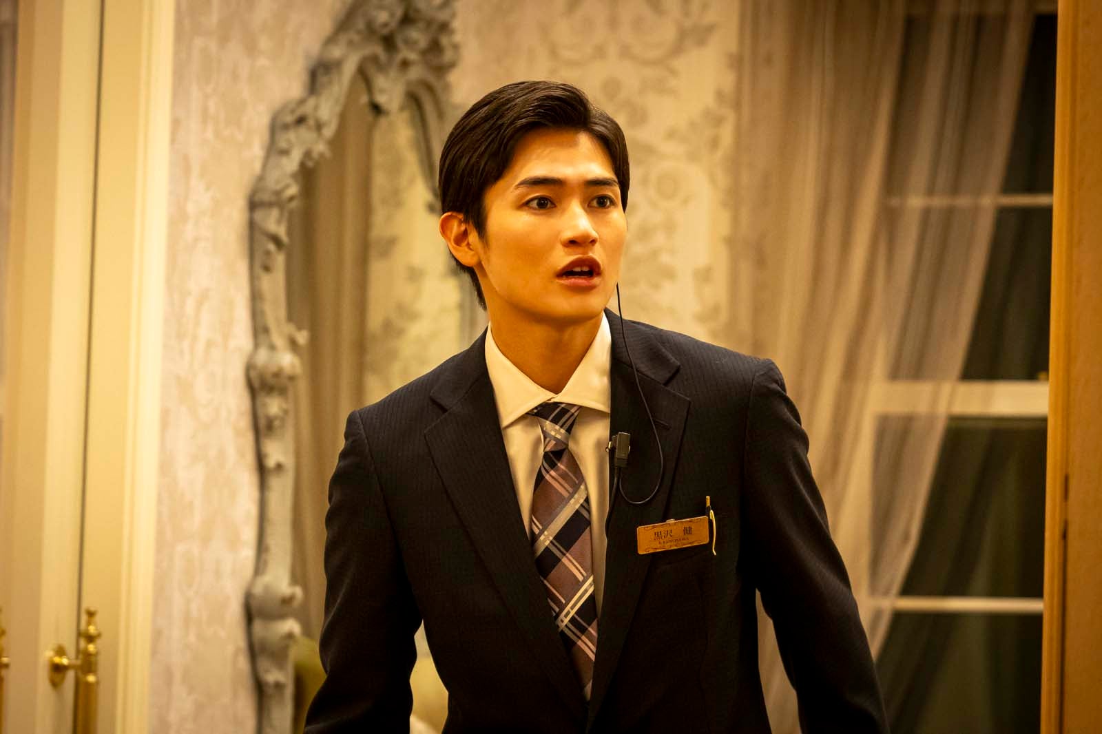 瞳の学生時代からの友人である岸圭吾(深澤)と大里美奈子(見上愛)。冒頭、就職活動に奮闘する3人の学生時代が描かれた。そこで注目を集めたのは岸のヘアスタイル。現在は葬儀屋で働いていることから落ち着いた髪色だが、学生時代は頭の上半分のみがオレンジに染められたマッシュヘアだった。