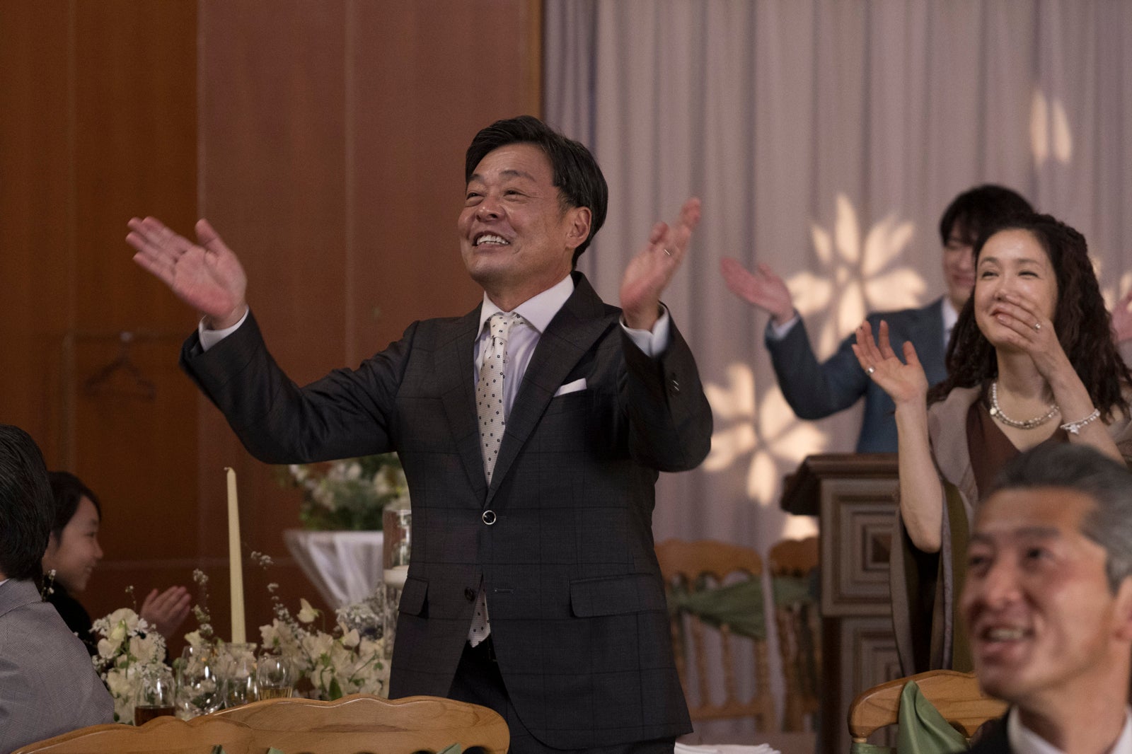 朝会うだけで無条件に元気をくれる太陽のような親子がいて、その元で作品作りに愛を持ってのぞむスタッフの方々がいて、そんな奇跡のような光景の中で、もう一生懸命やるしかないという思いでした。それは全然楽なことじゃないんですけど、でもすごく楽しくて、一生懸命やることの大事さ・幸せさを今一度思い出させていただきました。こんなに長くお父さん役をやったことがなくて、ふがいない父親ではありましたけど、皆さんのおかげで一生懸命やる姿はお見せできたのかなと思います。本当に幸せでした。