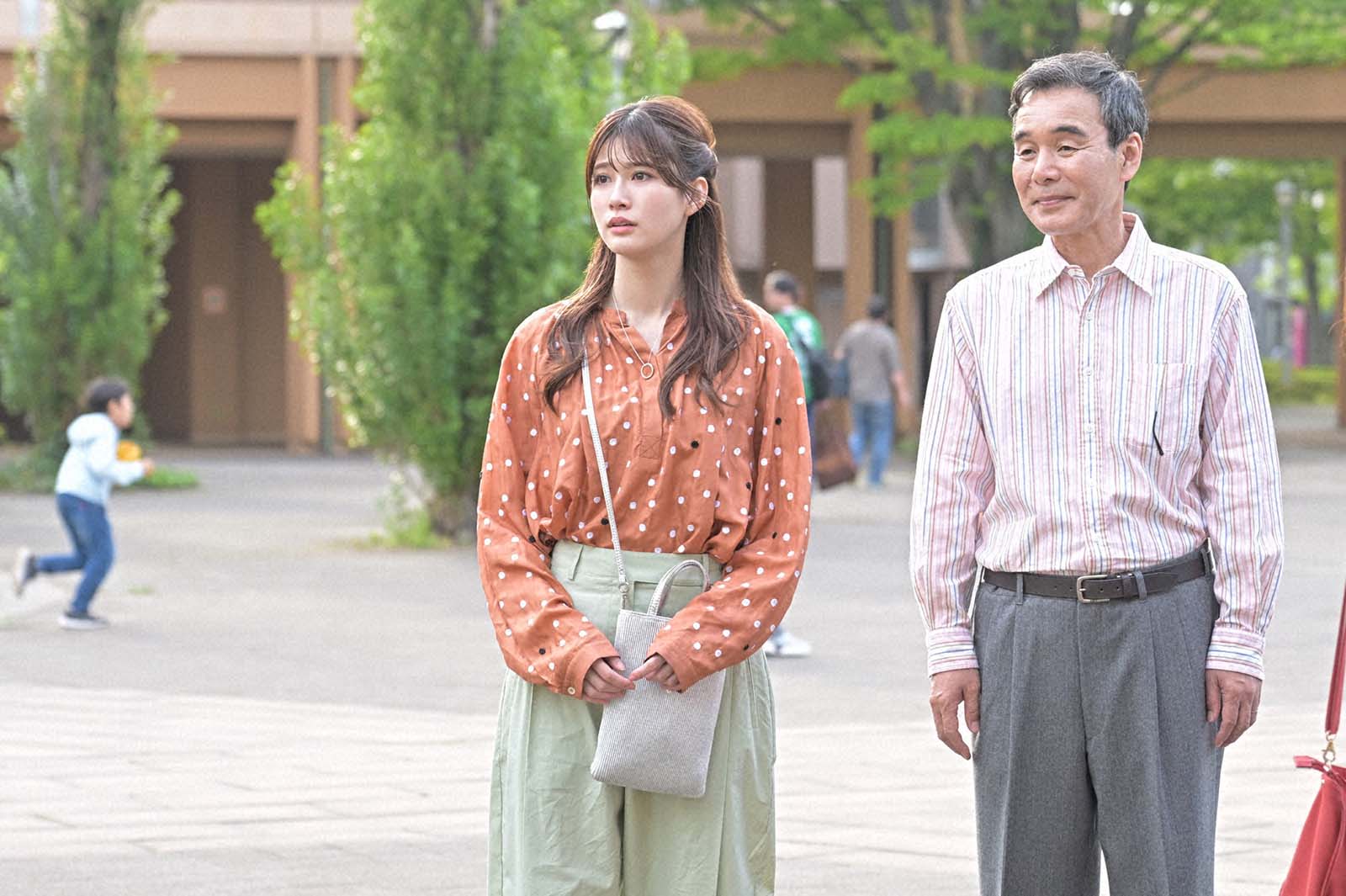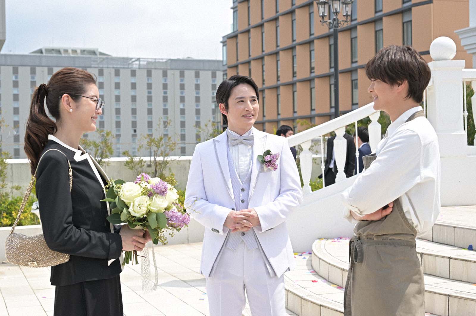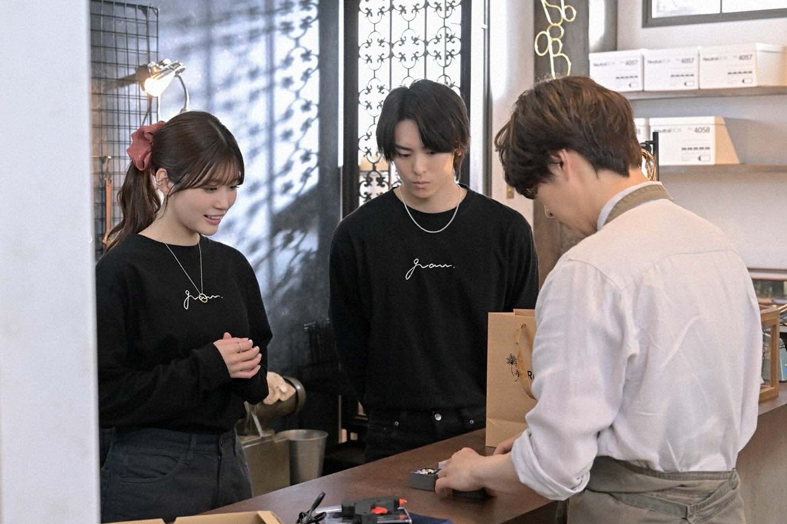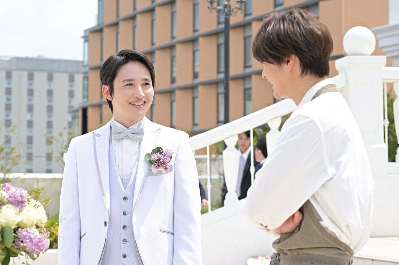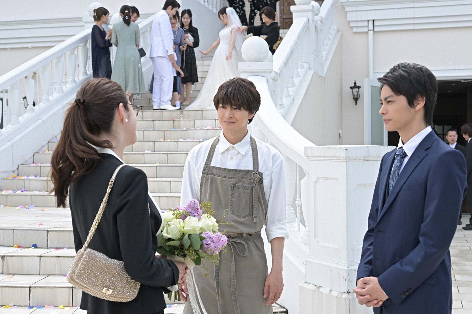 本作は、ある事故で記憶喪失になった主人公・緒方まこと(生見)が、手元に残された男性用の指輪を手掛かりに“恋の相手”と“本当の自分”を探していくラブコメミステリー。記憶を失くし困惑するまことの前に、指輪がぴたりとはまる3人の男性が現れることで、謎が謎を呼ぶ恋の四角関係が幕を開ける。公太郎(瀬戸康史)、聡(浜中文一)の結婚式へ