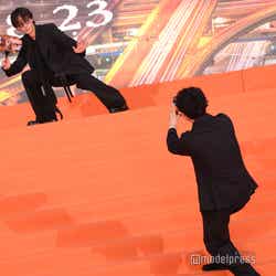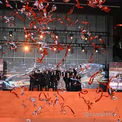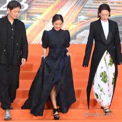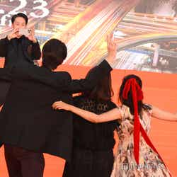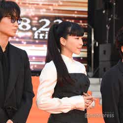 ブラックスーツ姿の阿部は黒髪から明るい金髪へ大胆にイメージチェンジ。他作品のための役作りで、いつもと雰囲気をガラリと変えた姿をオレンジカーペットでお披露目した。一言挨拶では、次に完成披露舞台挨拶も控えている中スケジュールが押していた状況を考慮し「時間が押してるみたいなんで、皆さん観てください!よろしくお願いします」とあえて手短に済ませる周囲への気遣いもうかがえた。