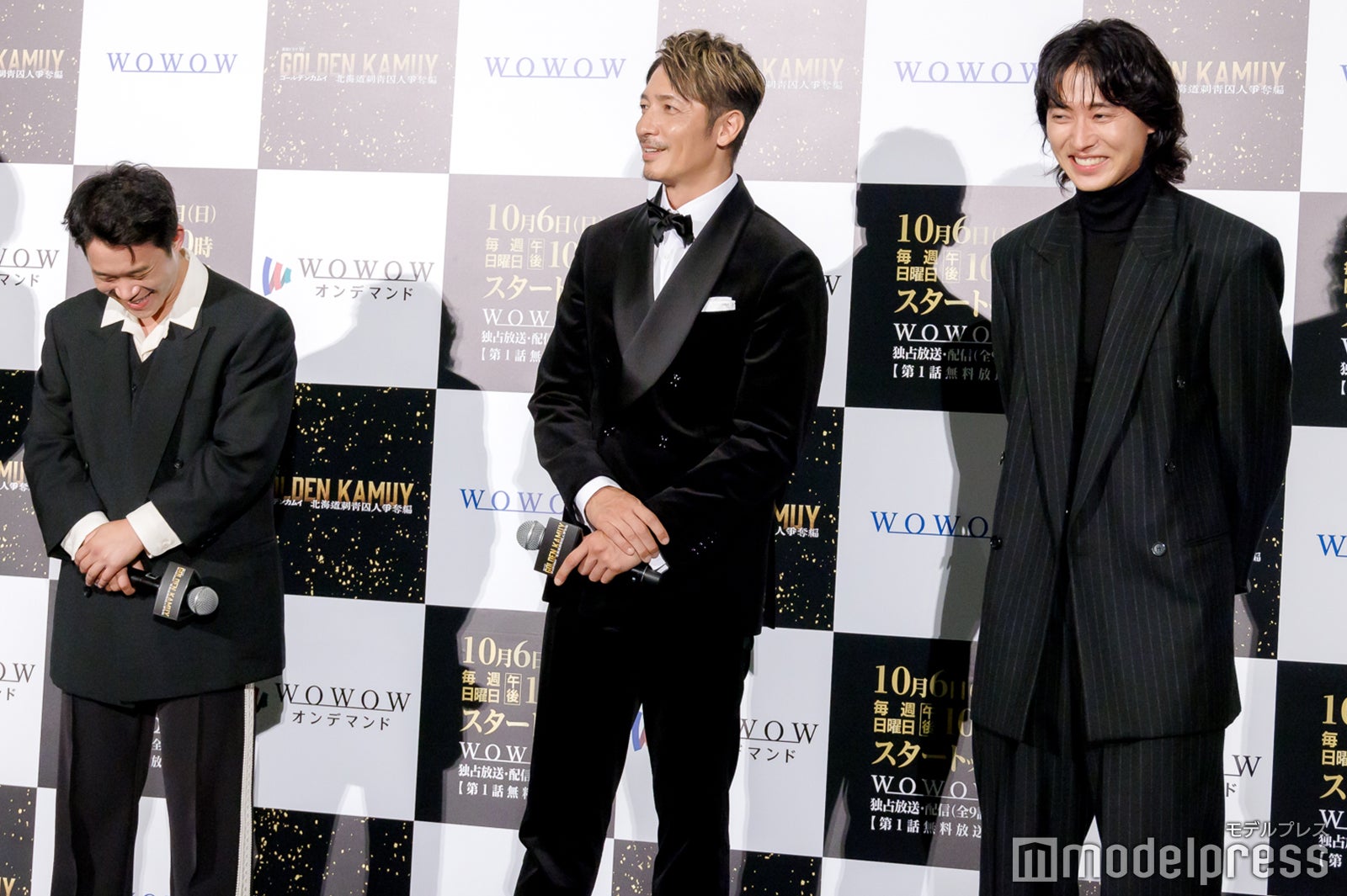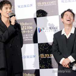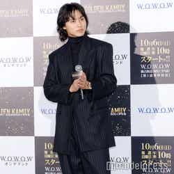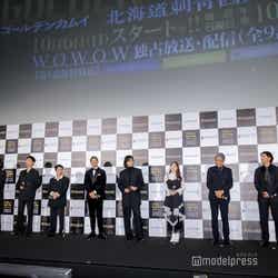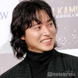 俳優の山崎賢人(※「崎」は正式には「たつさき」)が27日、都内で行われた『連続ドラマW ゴールデンカムイ―北海道刺青囚人争奪編―』完成披露試写会に、山田杏奈、矢本悠馬、柳俊太郎(※「柳」は正式には旧漢字)、塩野瑛久、桜井ユキ、中川大志、池内博之、玉木宏、舘ひろしとともに出席。本作での中川との共演を振り返った。