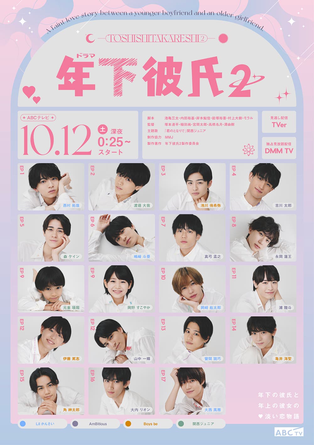 関西ジュニア19人が主演を務める10月スタートのドラマ「年下彼氏2」(ABCテレビ※関西地区のみ)のメインビジュアルが公開。相手役を務めるヒロイン17人も解禁された。
