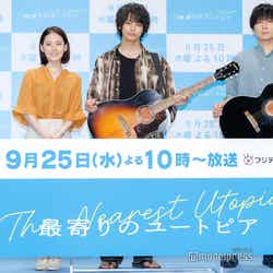 俳優の神尾楓珠が22日、都内で行われたスペシャルドラマ『最寄りのユートピア』(25日22時~)制作発表会に、北香那、山村隆太(flumpool)とともに出席。山村が、神尾の歌声で泣いたことを明かした。