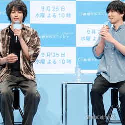 俳優の神尾楓珠が22日、都内で行われたスペシャルドラマ『最寄りのユートピア』(25日22時~)制作発表会に、北香那、山村隆太(flumpool)とともに出席。神尾が会見で生歌唱を披露した。