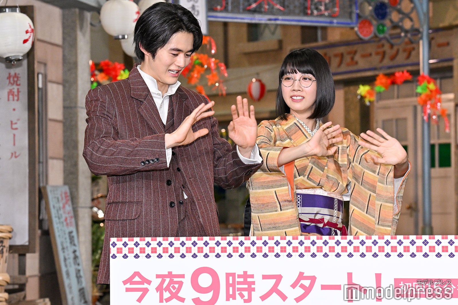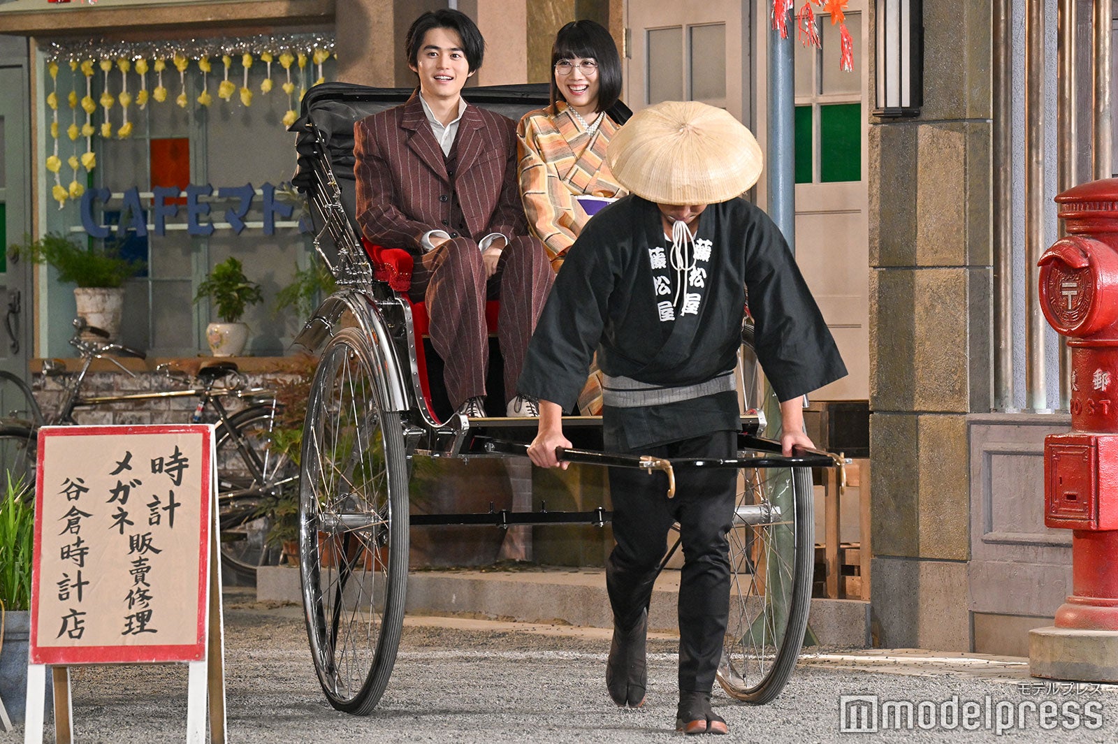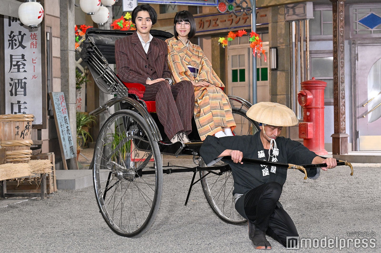 人力車に乗って報道陣の前に登場し、照れくさそうな表情を浮かべた2人は、人力車に初めて乗ったそうで、松本は「ちょっと恥ずかしかった…」と照れ笑いを浮かべ、鈴鹿は「出る前までは初めてだったので楽しいなって思っていたんですけど、出て写真を撮られていると思うと、どういう顔をしていたらいいんだろうか、手は振っていいんだろうかって…」と乗ってる際の心境を吐露。加えて、鈴鹿は「意外と最初は斜めで、グンって上がったら水平になって“こうなっていたか”って…思いました」と感想を語った。改めて、挨拶を求められると、鈴鹿は「普段、僕らが撮影している目抜き通りのセットに、これだけの記者の方が来てくださっている違和感とありがたさで、どうしようかなって今です。なるべく楽しく喋るように頑張ります」と語り、松本は「9月から撮影が始まって、この目抜き通りでインしたので、ついに放送初日が来たのかという、怒涛の毎日の中で今皆様を目の前にしてヒシヒシと感じております。少しでもたくさんの方にこのドラマのよさをお伝えできるように、楽しくお話ししていけたらいいなと思います」と笑顔を見せた。