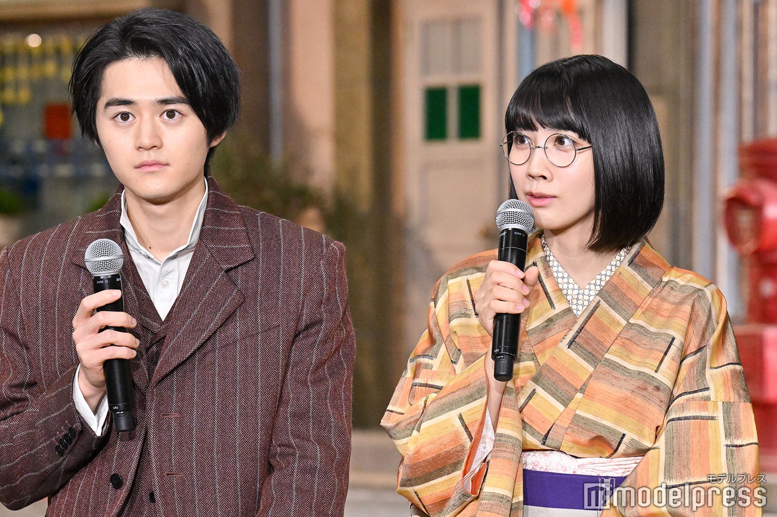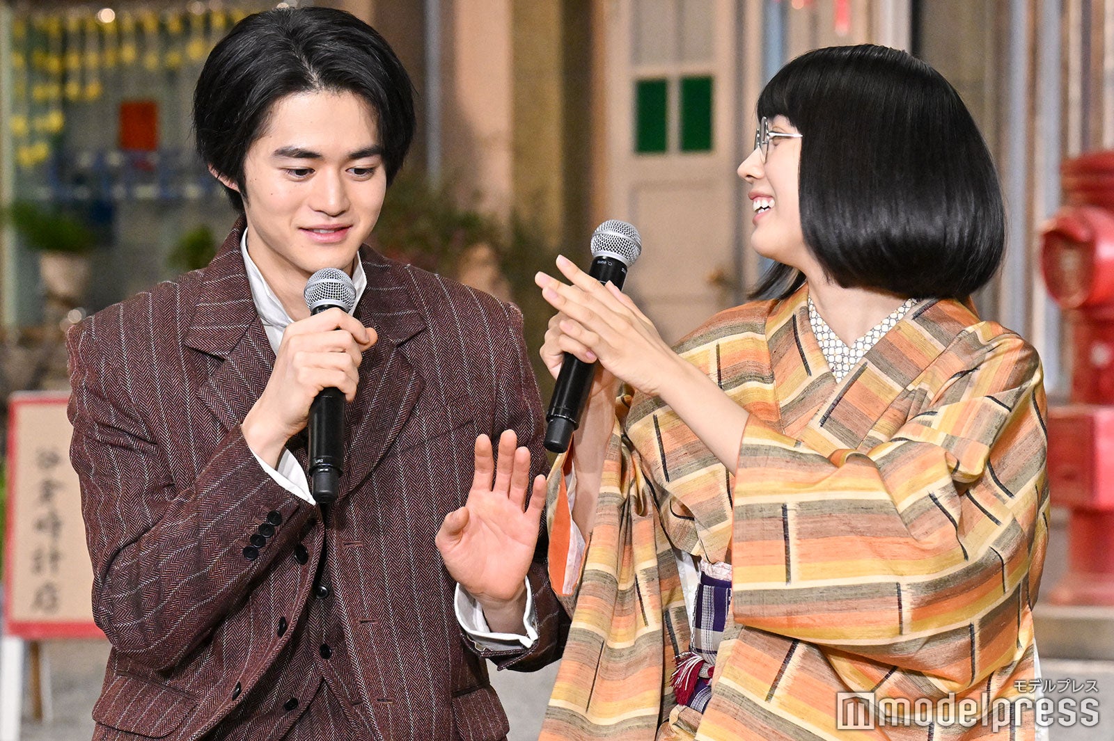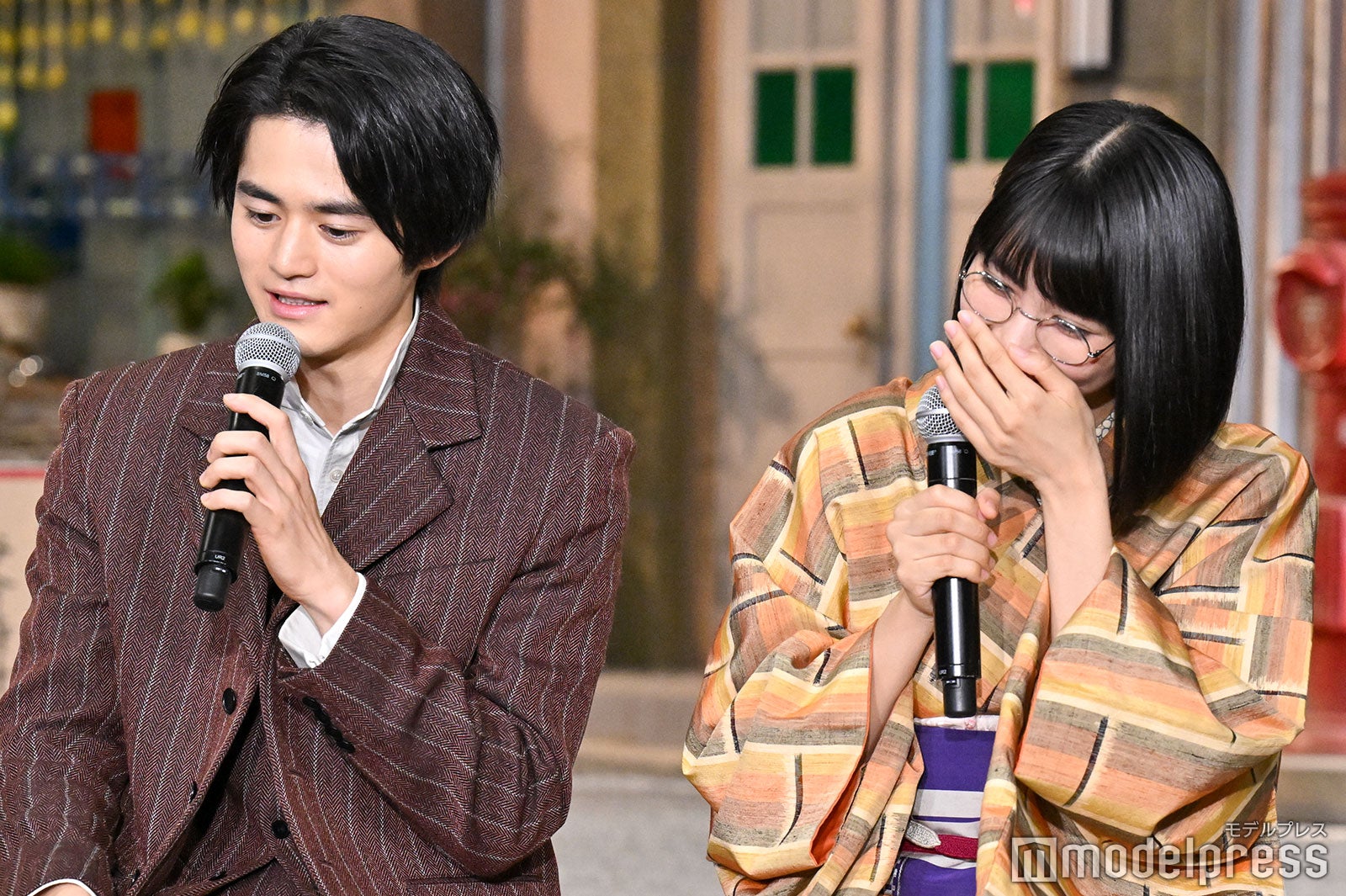 人力車に乗って報道陣の前に登場し、照れくさそうな表情を浮かべた2人は、人力車に初めて乗ったそうで、松本は「ちょっと恥ずかしかった…」と照れ笑いを浮かべ、鈴鹿は「出る前までは初めてだったので楽しいなって思っていたんですけど、出て写真を撮られていると思うと、どういう顔をしていたらいいんだろうか、手は振っていいんだろうかって…」と乗ってる際の心境を吐露。加えて、鈴鹿は「意外と最初は斜めで、グンって上がったら水平になって“こうなっていたか”って…思いました」と感想を語った。改めて、挨拶を求められると、鈴鹿は「普段、僕らが撮影している目抜き通りのセットに、これだけの記者の方が来てくださっている違和感とありがたさで、どうしようかなって今です。なるべく楽しく喋るように頑張ります」と語り、松本は「9月から撮影が始まって、この目抜き通りでインしたので、ついに放送初日が来たのかという、怒涛の毎日の中で今皆様を目の前にしてヒシヒシと感じております。少しでもたくさんの方にこのドラマのよさをお伝えできるように、楽しくお話ししていけたらいいなと思います」と笑顔を見せた。
