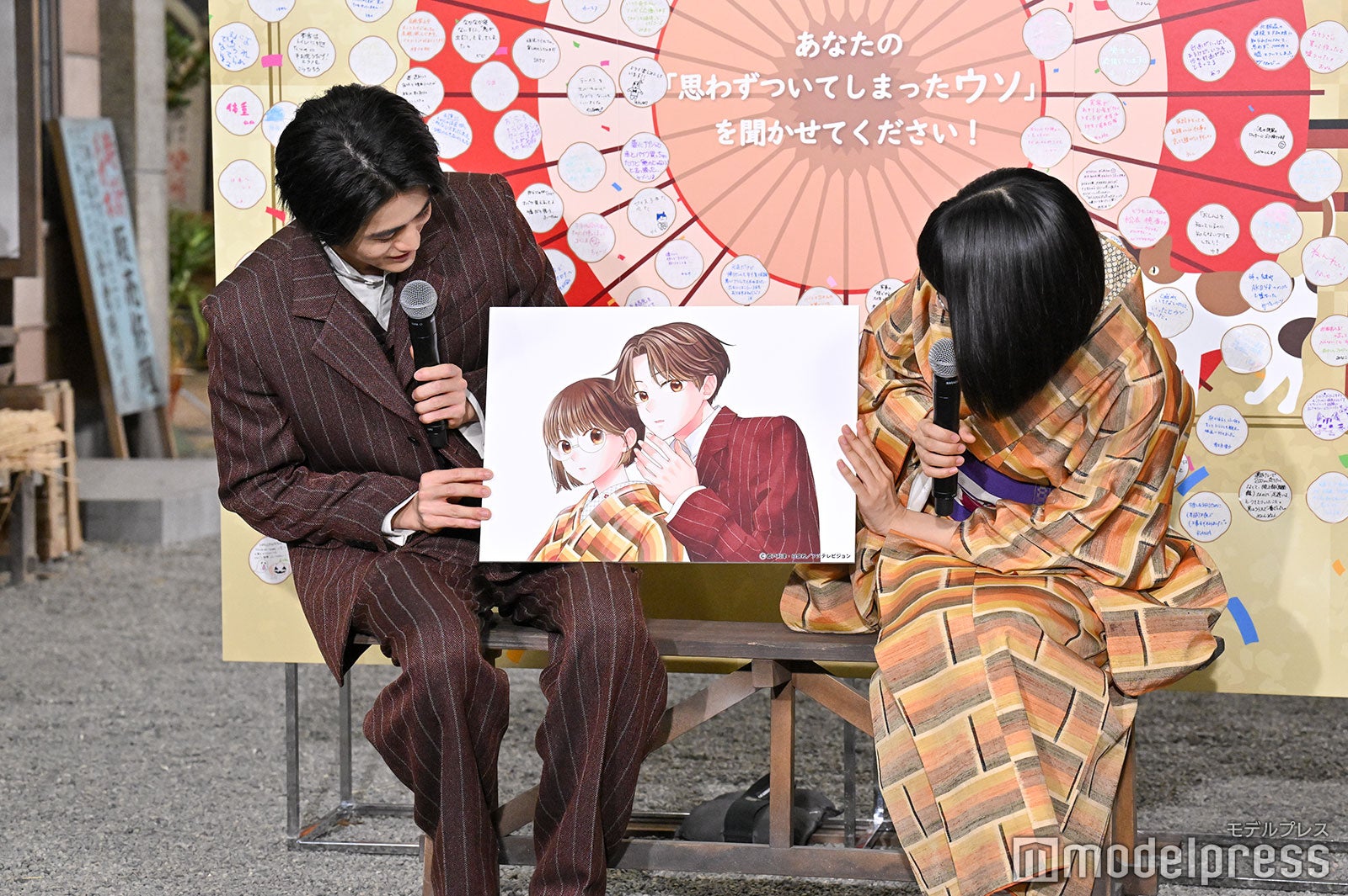 そして、撮影時の印象的なエピソードを聞かれると、松本は「さっきもテレビで言っちゃったんですけど、昨日スタジオで2人のシーンを撮っていて、段取り中に(鈴鹿が)セリフを言った勢いで、そのままゲーって思いっきりゲップをして…(笑)」と打ち明けつつ、「これ言って大丈夫?」と鈴鹿を心配すると、鈴鹿は「もうテレビで言っちゃったし、そういう俳優としてやっていきます」とコメント。これにMCが困惑すると、鈴鹿は「生理現象受け入れ俳優」と表現。続けて、セリフと同じ声量のゲップが出たことを明かした松本は「私は笑いが止まらなくて、そういう場面がめちゃめちゃあります」とよく笑わせられていることを明かした。その後、サプライズで原作者の都戸利津氏が描いた2人のイラストがお披露目されると、2人は大喜びし、最後にフォトセッションを行い、そしてムービーセッションの際にお手振りを求められると、鈴鹿は急に手の振り方がわからなくなってしまい、それを見た松本がツボに入ってお腹を抱えて爆笑する横で、鈴鹿は佐野瑞樹アナから手の振り方を教えてもらうなど、鈴鹿と松本のほんわかとした空気感に、会場は終始和やかな雰囲気に包まれていた。(modelpress編集部)