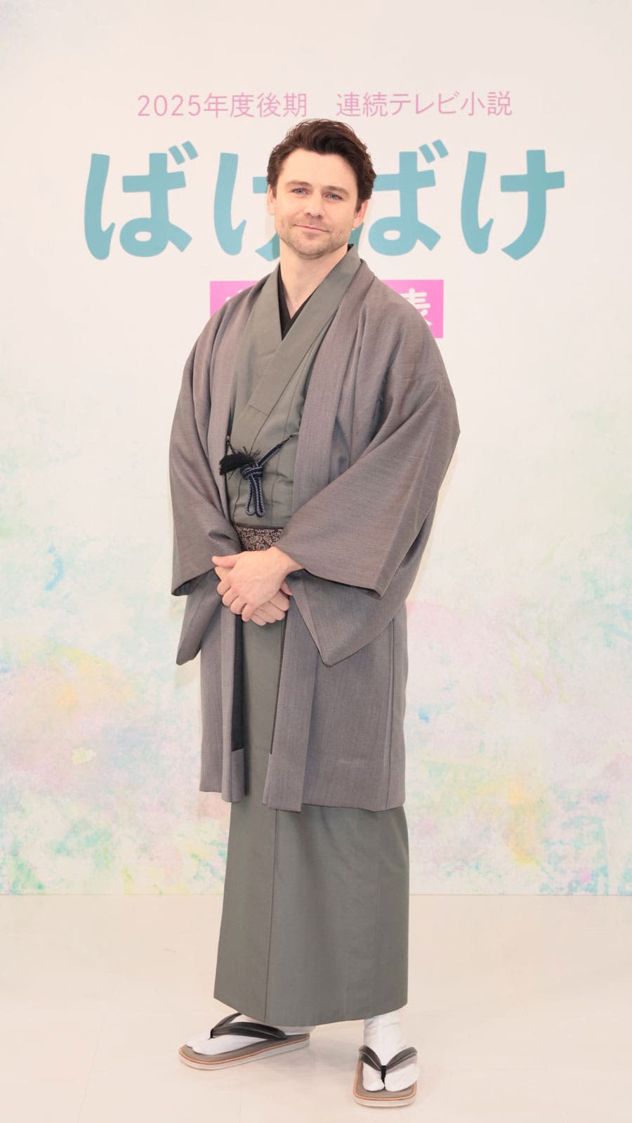 NHK大阪放送局にて一般公開で実施された同会見にて、着物姿で登壇したトミー。オーディションの応募総数は国内246人、海外から1521人(アメリカ1352人、イギリス149人、オーストラリア・ニュージーランド20人)の1767人に及び、書類選考・リモート動画選考・面談を経て、最終審査のカメラテストは日本で実施し、10月に決定した。朝ドラ史上初の外国人ヒロイン誕生となった2014年度後期NHK連続テレビ小説「マッサン」ヒロインのエリー役(シャーロット・ケイト・フォックス)のオーディションでは、国内232人、海外289人の521人の応募で、今回はその約3倍の応募総数となった。トミーは1991年8月26日生まれ、イギリス出身。2007年、ロックバンド「FranKo」を結成し、リードボーカルとして現在も活動中。2008年、「ジョージアの日記/ゆーうつでキラキラな毎日」でメジャー映画に初出演し、イギリスで俳優としてのキャリアをスタートする。2018年よりアメリカにも活動を広げる。主な出演作に、ソニー・ピクチャーズ映画、ケリーマディソン監督による「ネバー・バックダウン/自由への反乱」(2021)、TVドラマ「Man in an Orange Shirt」(2017/BBC)、ハイ・コンセプトSFシリーズ「The Crossing/未来からの漂流者」(2018/ABC)、日独合作の「ザ・ウィンドウ」(2022/ZDF・フジテレビ)など。2024年エミー賞受賞ドラマ「SHOGUN 将軍」にて、メインの1人であるマルティン・アルヴィト司祭役を演じ、注目される。10年間ほど日本語を学んでおり、日本語が堪能である。
