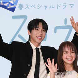 俳優の松坂桃李が12月10日、TBS系新春スペシャルドラマ「スロウトレイン」(2025年1月2日よる9時~)制作発表会見に、主演の松たか子、共演の多部未華子、星野源、チュ・ジョンヒョクとともに出席。松、多部との共演について語った。