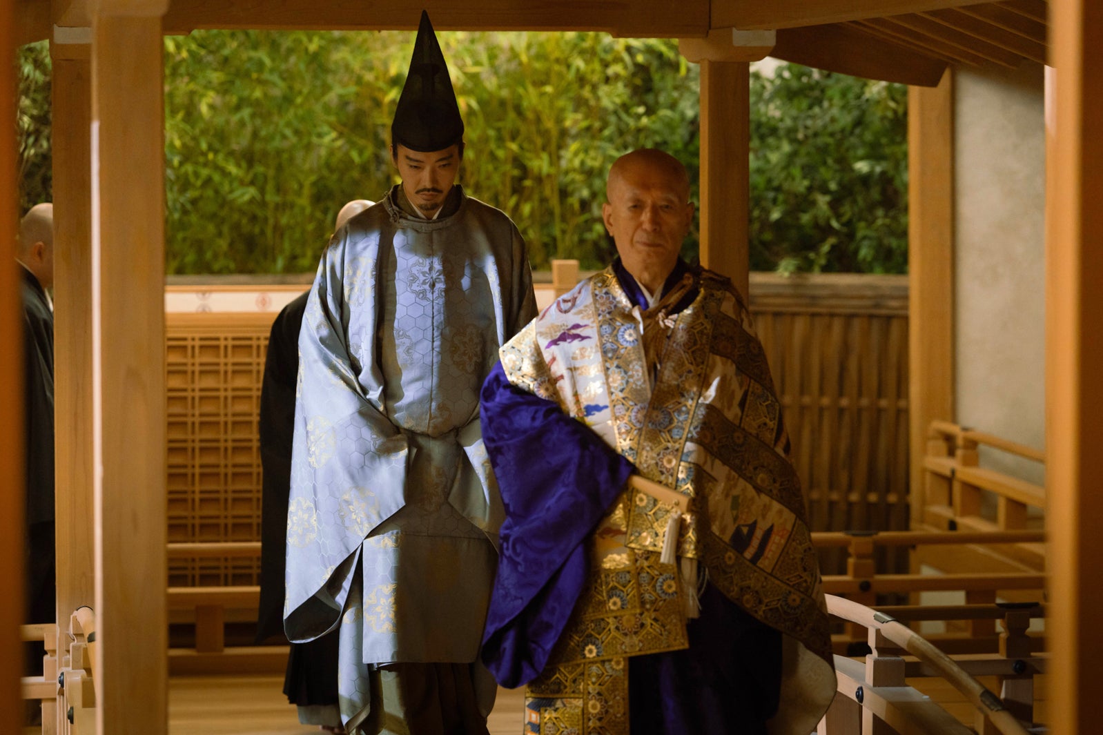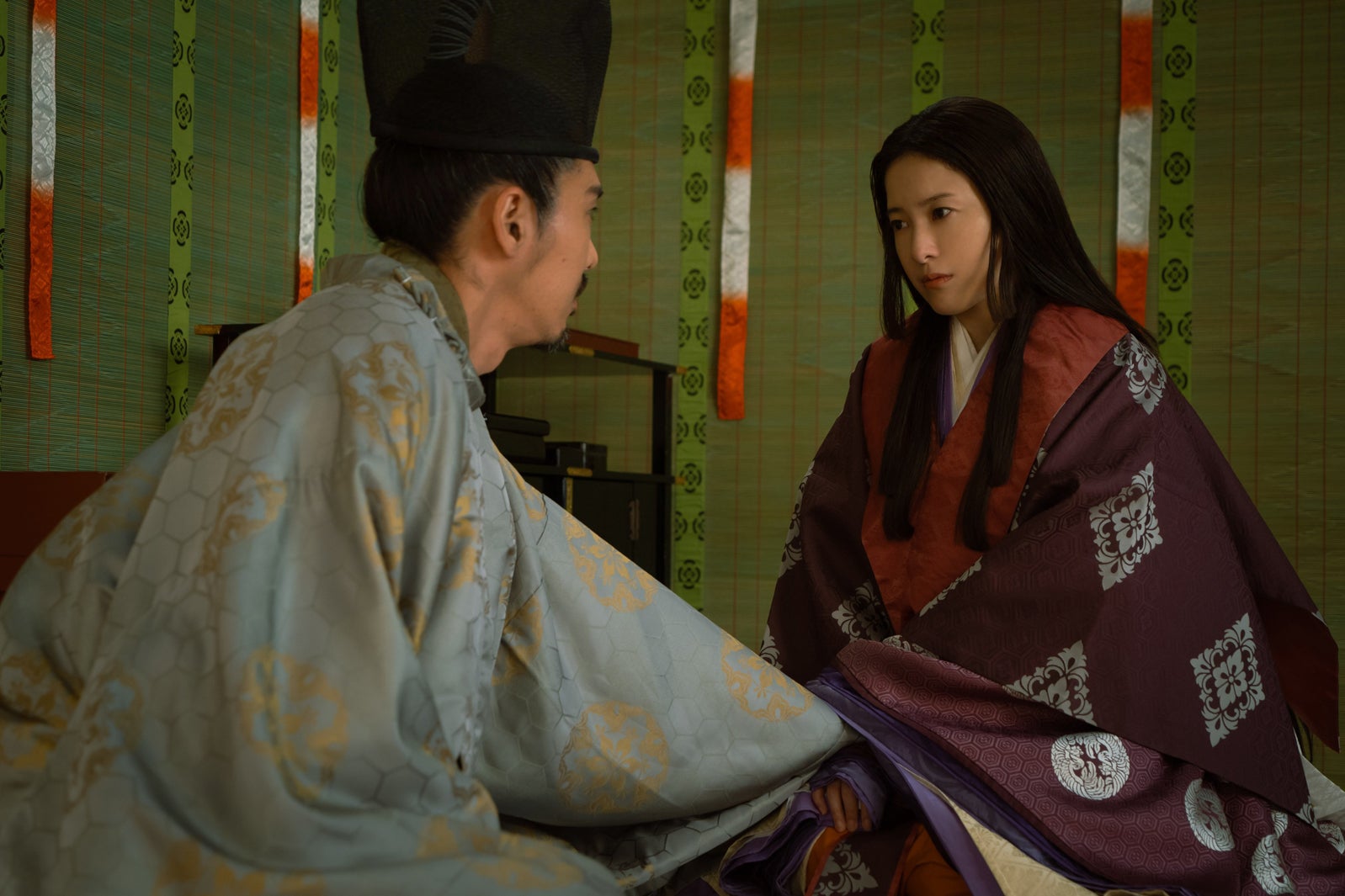 吉高:自分の撮影は終わっていたんですけど、剃髪シーンのときに、セットに残って一緒に見届けていたんです。約2年間かけて髪の毛を伸ばして、全部地毛でやるというのは、気持ちもすごく入っていますし、その大事にしてきたものを切り落とす瞬間というのは私も見ていたいなと感じたので残りました。想いを切り落とされるような感覚になるんじゃないかなと思って「どういう感覚?」と聞いたら、(柄本は)「言葉じゃ説明できない感情が込み上げてきた」と言っていて、そういう瞬間に立ち会えて良かったし、改めてともに闘ってきたんだなと思いました。だから私自身、第47回の撮影のときにサプライズ感はなかったんですけど、まひろとしては出家したことを聞いてはいても目の当たりにするとびっくりしますよね。あの時代の出家は死んだことと同じ意味とも言うので、衝撃ではあったけどホッともしていたのかなと思って、苦しんでいる・弱っている姿を見なくても良いのかなと遠くから安らぎがこっちを見つめているようなそういう気持ちもあったと思います。