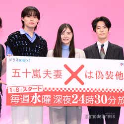 海石ともえ氏による漫画「五十嵐夫妻は偽装他人」をドラマ化した本作は、会沢真尋(新川)と別居中の夫・五十嵐直人(塩野)という、素直になれない夫婦2人のじれったさに“もだもだ”するラブコメディー。この日は、同僚で直人のライバル・瀬戸翠を演じる兵頭功海、清楚系あざと女子・林美羽を演じる田辺桃子、ドラマオリジナルキャラクターで真尋と直人が行きつけにしているスナックのマスター・三吉妙を演じる浜中文一も出席していた。(modelpress編集部)
