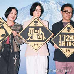 女優の市川実日子、東京03の角田晃広、女優の鈴木杏、平岩紙がこのほど、都内で行われた日本テレビ系ドラマ「ホットスポット」(12日スタート/毎週日曜よる10時30分~)制作発表会見に出席。市川がドラマに登場する宇宙人の正体に言及した。