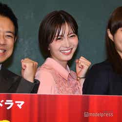 熱血な数学教師・浦見光役を演じる渡辺は「とにかく明るかったり、めちゃくちゃ天然だったりと色々な要素があって、自分にとって新しい役柄」だと説明した上で「コメディってすごく難しいんだなって改めて体感して勉強しながらやらせてもらってます。このドラマでちょっとでも笑いの部分を担える一員になれたらいいなと思ってます」と意気込んだ。会見では「言いたいけど言えないこと」をテーマにトークを展開。最初に指名された広瀬は「渡辺さんの口癖」とし「(渡辺が)よく『すみません』って言うんですよ。事あるごとに『すみません』って言うので、毎回『“すみません”って言わなくていいですよ』って言うのも疲れてきちゃったので『すみません』1回につき10円の罰金制にしまして。今120ぐらい溜まってて…。なので、『すみません』が聞こえたらどんどんどんどん貯金されて、最後にはみんなに何か奢ってもらおうかな」と話した。