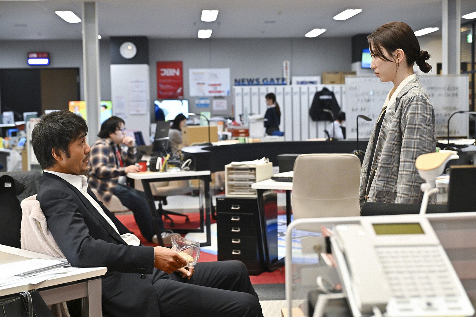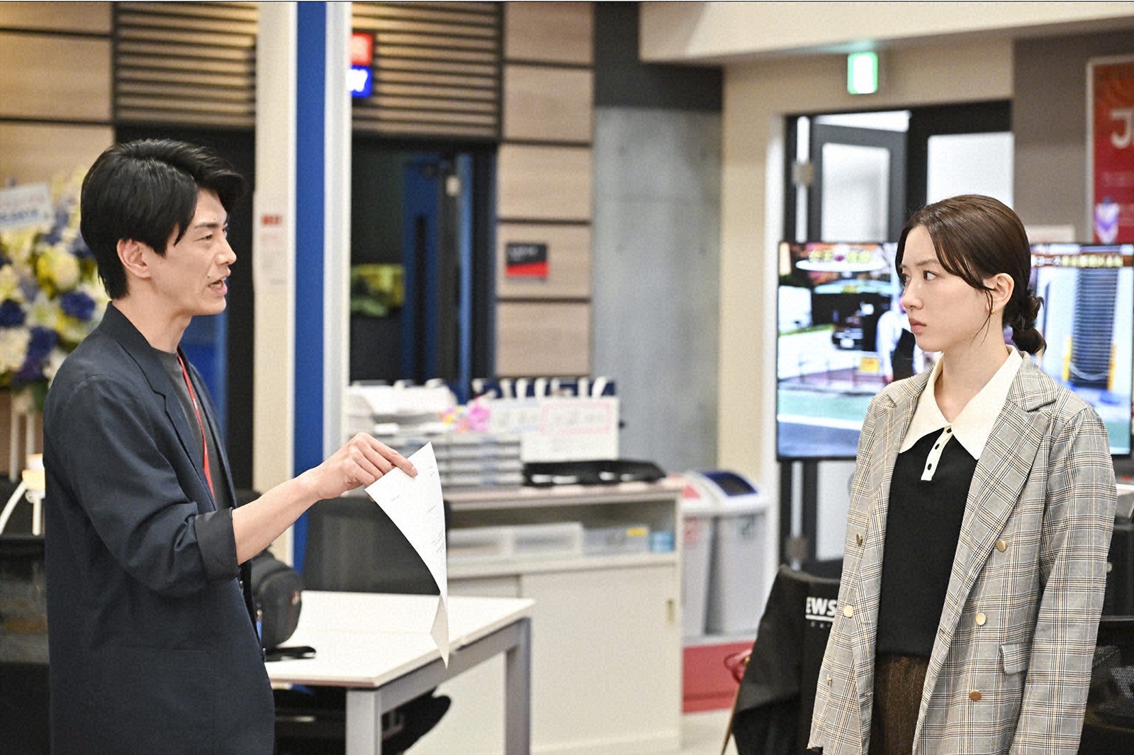 民放テレビ局JBNの夜の報道番組「ニュースゲート」リニューアル初回の目玉は内閣官房長官・羽生剛(北大路欣也)の生出演。ところが、秘書から急遽キャンセルの連絡が入る。慌てるスタッフたちをよそに進藤は新人ADの本橋悠介(道枝駿佑)とある場所に向かい、羽生本人にキャンセルの理由と贈収賄疑惑との関連を問い詰めると、贈収賄疑惑の記事を揉み消す代わりに生放送で党の裏金問題に答えるよう交渉する。しかし、羽生は突然倒れてしまい、「ニュースゲート」はメインキャスター不在のまま生放送に突入。羽生の行方を追っていた進藤は、羽生が主治医のいない関東医科大学に搬送されたこと、そしてわずか数日で主治医のいる名慶に転院したことに疑問を持つ。一方、番組の総合演出に抜擢されたばかりの崎久保華(永野芽郁)は進藤とベテランスタッフの間で板挟み状態。進藤から「報道に携わる者は毎日がエイプリルフール」と教えられた華は、その言葉に引っかかりを覚えた様子を見せる。華のフラッシュバックの中には進藤の姿があった。