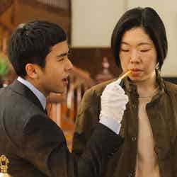 第2話では、名田奥太郎(佐野史郎)殺害事件の容疑者として逮捕された凍也と、その弁護人に就任したあやめが再会。弁護士としてあやめが救いの手を差し伸べたことをきっかけに、2人はさらに惹かれ合っていく。その後、あやめの尽力で釈放された凍也はオフィスに現れ、弁護費用を渡して去るが、彼のことが気になったあやめは会議の時間が迫っているにもかかわらずあとを追いかけ、人気のない階段下の路地で2人きりに。互いに見つめ合う中、凍也が「どうして聞かないんですか?オレが殺したのかって」「俺のこと、本当に信じられますか?」と問いかけると、あやめはそれが答えであるかのように彼に激しくキス。やがて、凍也の指はあやめのスカートの中へと滑り込んでいく。そしてラストシーン、2人の愛はさらに濃密さを増すことに。奥太郎の葬儀会場で激昂する親戚(梅沢昌代)から、キムチチゲをぶっかけられるあやめ。そのとんでもない展開や、葬儀場で登場人物たちブチ切れ絶叫する姿に、視聴者も唖然。更に、あやめが髪や喪服についたスープを洗い流していると、トイレに心配した凍也が現れる。うなじについたスープの残骸を取ってくれた凍也と、鏡越しに見つめ合ったあやめ。次の瞬間、2人はまたしても弾かれたように唇を重ね、激情にかられた凍也はあやめのTシャツを脱がせるとともにもつれ合いながら個室へと消える。