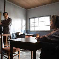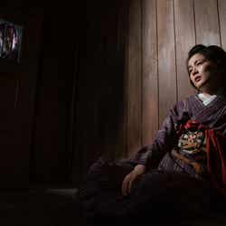 松本清張氏の不朽の名作「天城越え」を映像化した本作。誰にでも“忘れたい過去”があり、“忘れられないひと”がいる。その“忘れられない、たいせつなひと”が、もし、自分の罪をかばっていたら…。SNSで簡単に画像を拡散できてしまう時代だからこそ「色あせない記憶の尊さ」そして「永遠に消えない贖罪」を描く。刑事・田島貞藏を演じた岸谷五朗と取調室で共演したシーンについては「本当に閉鎖的な空間で、お芝居といえども、罵声を浴びたりとか疑いの視線を向けられたりして、私も神経がすり減るようなしんどい中で、なんとか持ちこたえるようなギリギリの状態で撮影していました」と吐露。その上で、岸谷本人に対しては「撮影に入ったらもうグッとにらみ合わなきゃいけないですけど、でも裏では『こう動いた方がリアクションがしやすいんじゃないか』とか、すごく優しく寄り添ってくださったので、とても心強かった」と明かし、「岸谷さんとは今回の作品で再会するのが10年ぶりだったんです。前回が親子での共演だったんですけど、今回は遊女と刑事という関係性で。取調室のシーンを終えた後に、『あの時とは全然別人だった』という風に一言言っていただけたのが、すごく嬉しかったなと思います」と笑顔を見せた。制作統括の黒沢淳氏も「岸谷さんは絶賛していました」と報告していた。