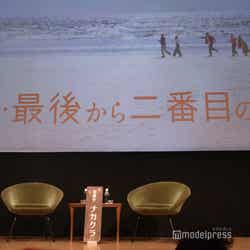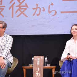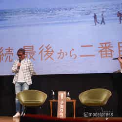 劇中の舞台となる「カフェナガクラ」のテーブルと椅子のセットが置かれたステージに西山喜久恵アナウンサーの呼び込みで、まずは小泉がノリノリにダンスしながら登場。最初の質問に答えた後、小泉はおもむろに立ち上がり、劇中の定番シーンを再現し、会場後方から中井が合流してさらに会場を沸かせた。第3期目となり、小泉は「貴一さんを本当に信頼しているのでどんな玉を投げても投げ返してる感じがあるので全部楽しい」としみじみ。今作といえば、千明と和平のコミカルな掛け合いも見どころの1つ。中井は「『アドリブですか?』とよく聞かれるけど、アドリブはないんですよ」と言い、「『監督がカットをかけるまでは芝居を続けろ』っていうのが僕たちの世代なのでそれをやるんですけど」となかなかカットがかからないこともあるそうだが、「どんなことを言っても(小泉から)びっくりするぐらいの言葉が返ってくるんです。それが多分信頼なんですよね。その節度がわかってたりとかするのが僕にとっては本当に最高のパートナーだと思っています」と小泉への信頼を語った。