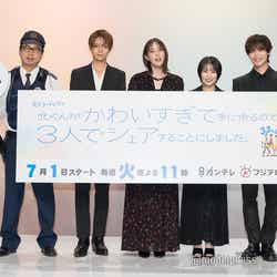 お笑い芸人のおいでやす小田が6月20日、都内で行われたカンテレ・フジテレビ系ドラマ『北くんがかわいすぎて手に余るので、3人でシェアすることにしました。』(7月1日スタート/毎週火曜よる11時~)制作発表に出席。本田翼、志田未来から、ルール違反を指摘される場面があった。