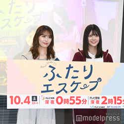 乃木坂46の岩本蓮加と冨里奈央が、都内で行われたドラマ「ふたりエスケープ」(10月4日スタート/テレビ大阪:毎週土曜深夜0時55分〜・テレビ愛知:毎週土曜深夜2時15分~・Leminoプレミアム:テレビ大阪放送後から独占配信)の記者会見に出席。W主演を務める2人が、本作の撮影を通して知った互いの新たな一面や、印象の変化を語った。