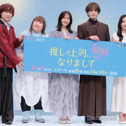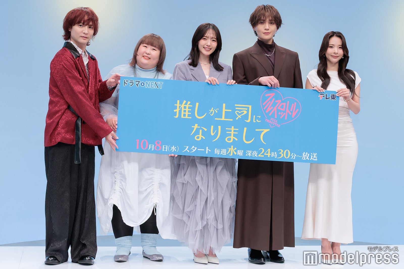 歌手の鈴木愛理とFANTASTICSの八木勇征が10月8日、都内で開催されたドラマNEXT『推しが上司になりまして フルスロットル』(テレビ東京系/毎週⽔曜深夜24時30分〜)記者会見に、かなで(3時のヒロイン)、すがちゃん最高No.1(ぱーてぃーちゃん)、ミチとともに出席。鈴木と八木が、推しへの思いで共鳴する場面があった。