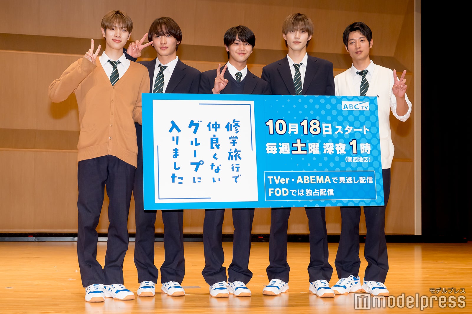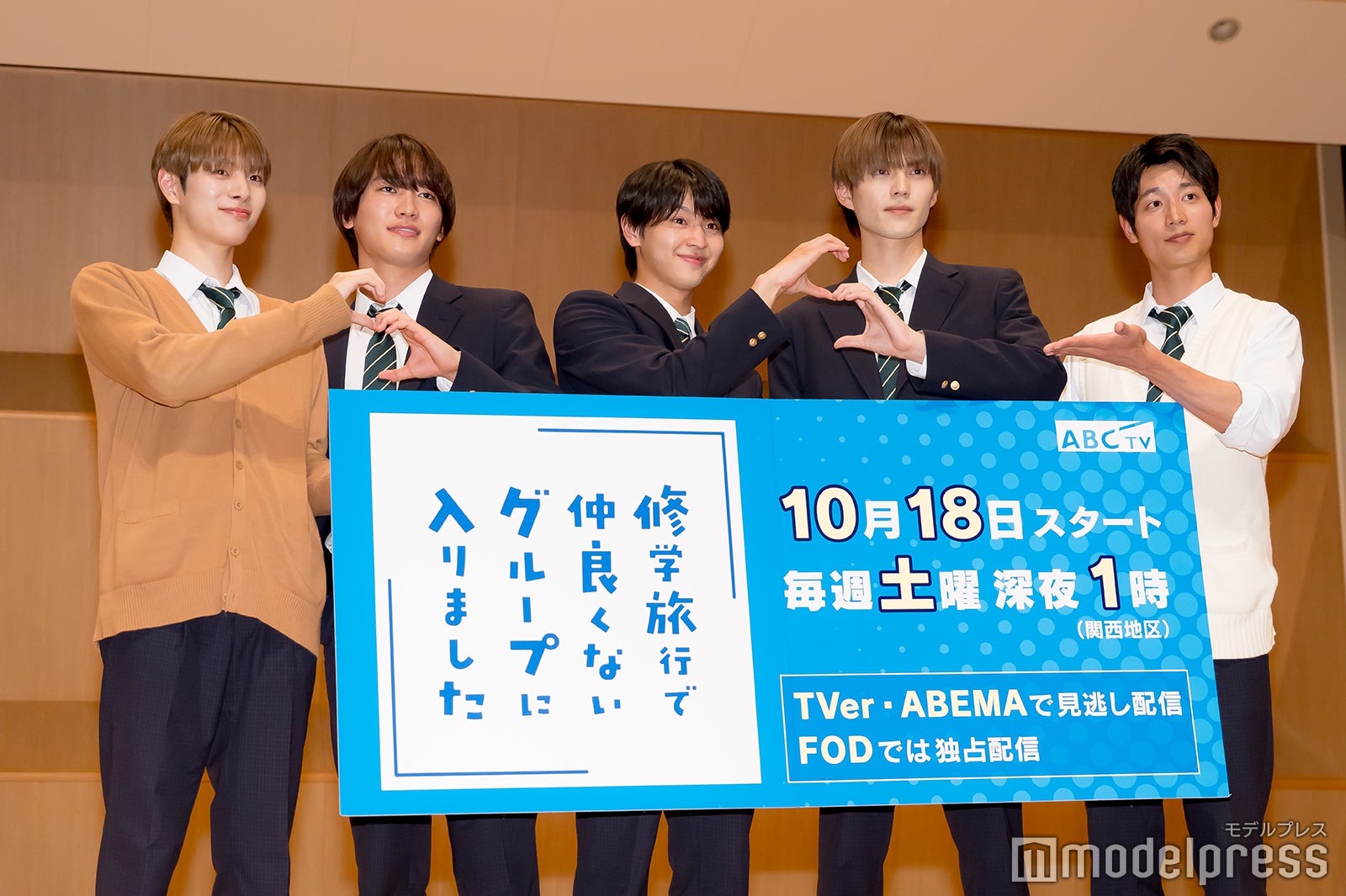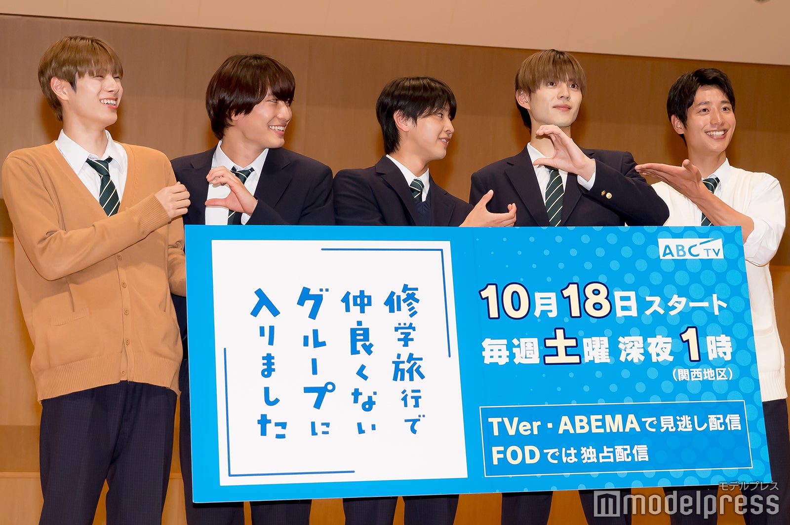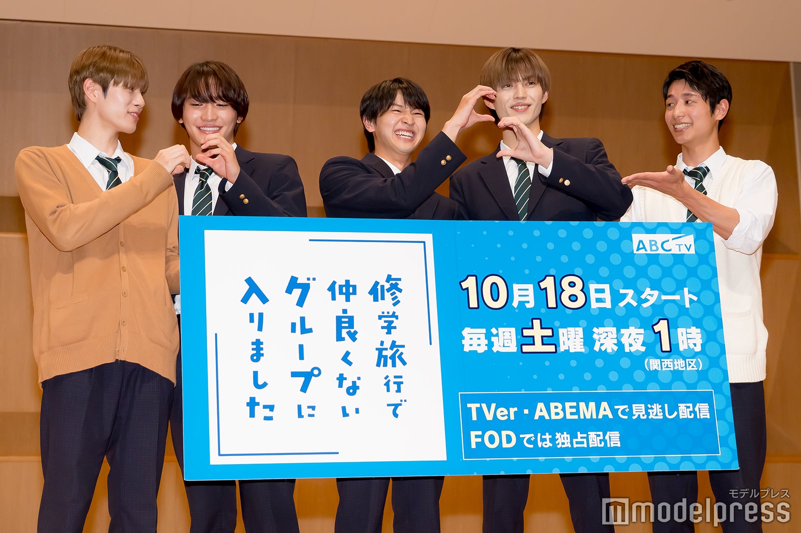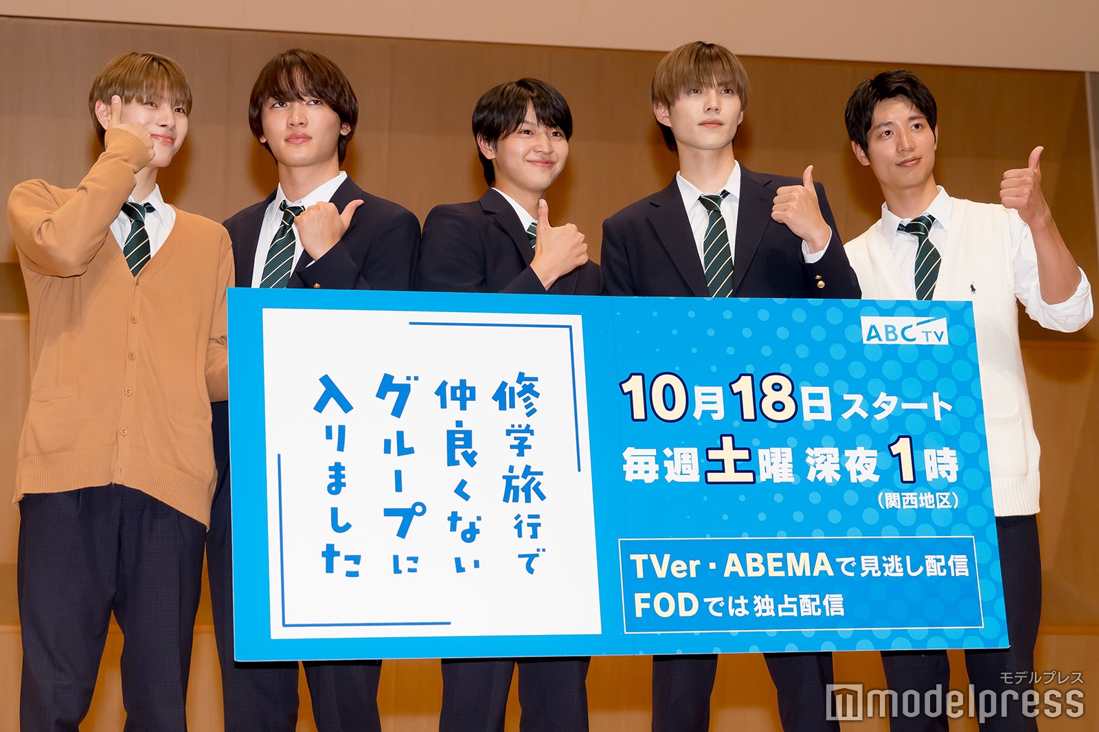 俳優の藤本洸大と桜木雅哉(原因は自分にある。)が、14日に開催されたドラマ「修学旅行で仲良くないグループに入りました」(10月18日スタート/毎週土曜深夜1時~・ABCテレビ※関西ローカル)の制作発表会見に、簡秀吉、福田歩汰(DXTEEN)、清水海李と共に出席。撮影後に起きた恐怖体験を明かした。