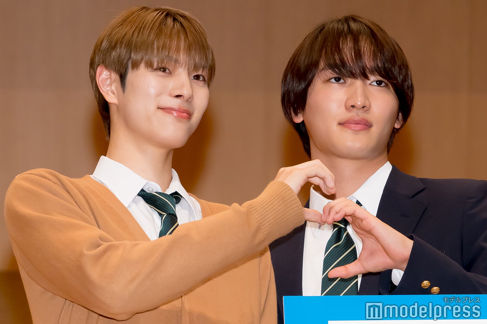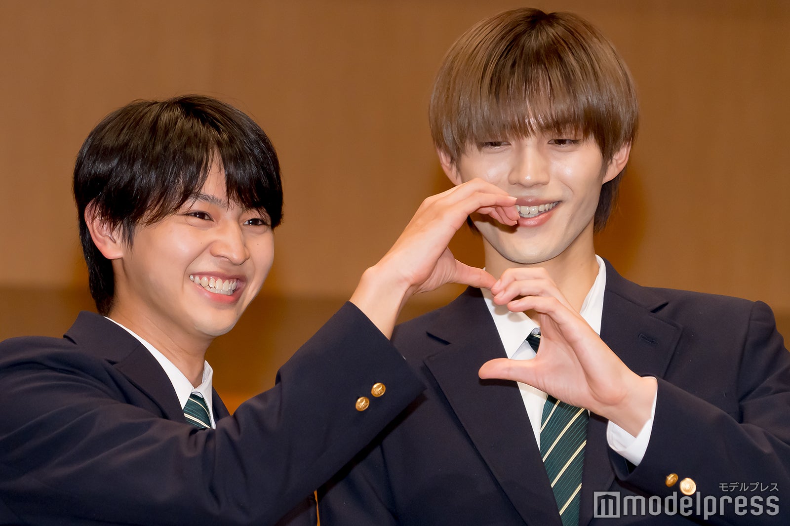さらに、印象に残っているシーンについてもトーク。簡は、渡会(簡)が水を飲むシーンについて触れ「水を美しく飲んでいる男性ってすごくクールじゃないですか。あそこは家でもめちゃくちゃ練習しました」と告白。鏡を見ながらずっと練習をしていたと打ち明けた。BL好きだという簡は、本作の胸キュンシーンを「日置(藤本)とのシーンはずっと僕自身緊張もドキドキもしている」とした上で「一番ドキドキしたのは、修学旅行の2日目のホテルでのシーン」とコメント。「渡会自身も簡秀吉自身もすごくドキドキして緊張したシーンではありました」と振り返った。藤本も「やっぱり僕も緊張した二人のシーンを挙げるとしたら、ホテルのベッドのシーン」と回答。「ちょっと変な空気ではありました。しゃべらなかった」と回想し、簡は「しゃべらなかったですね。緊張しちゃって。プラス、1日中ベッドでの撮影だったのでちょっと眠気も来てしまった(笑)」と話した。