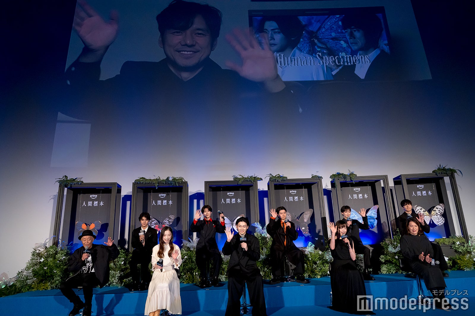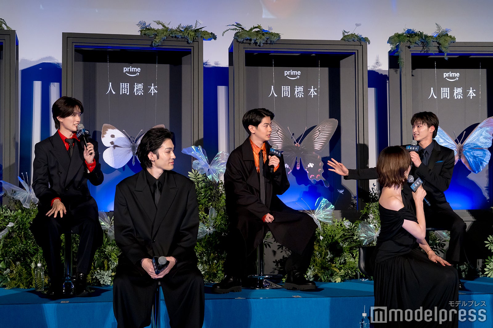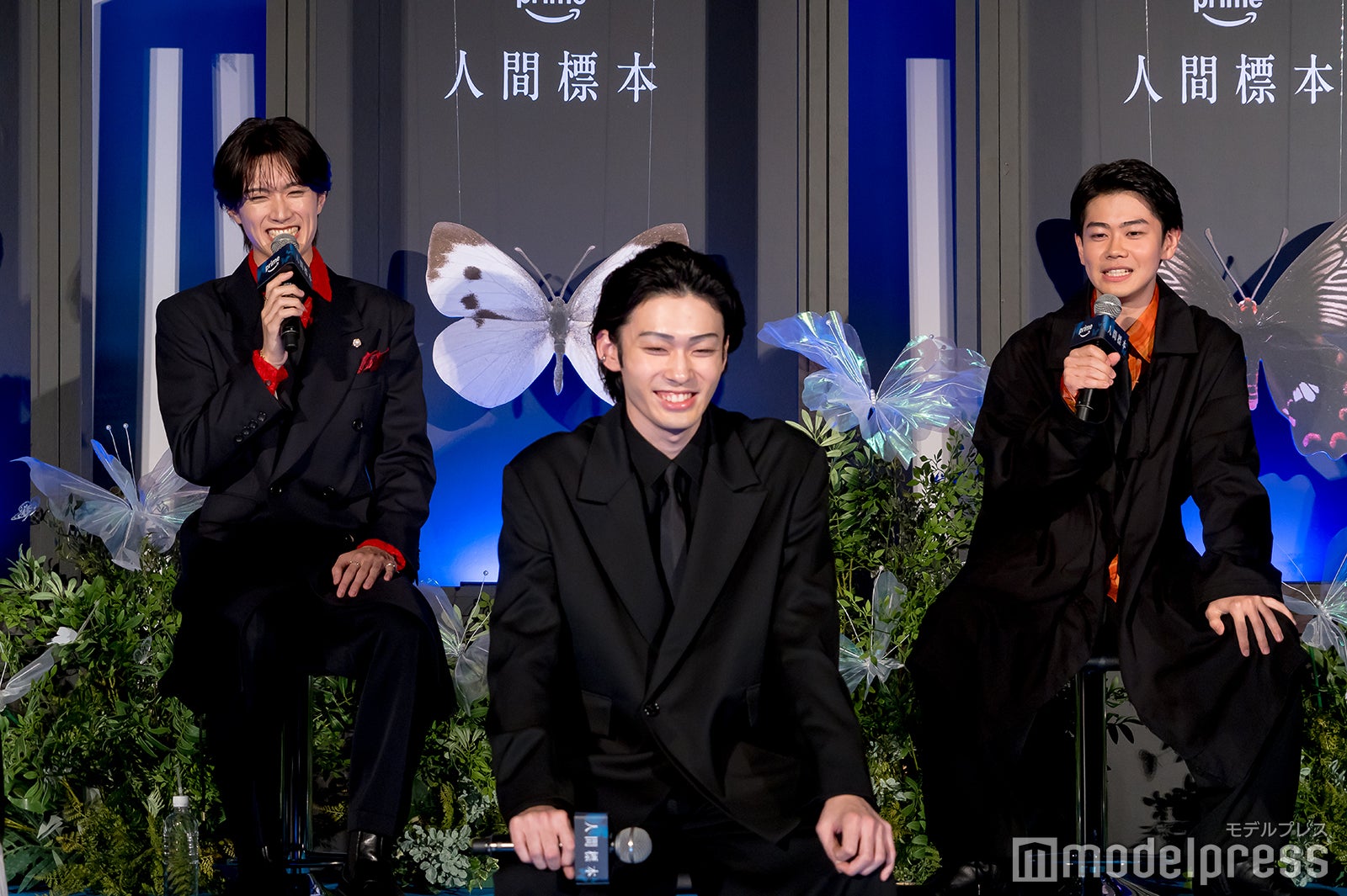 「人間標本」は、ベストセラー作家・湊かなえ氏が、デビュー15周年を記念して書き下ろした同名小説を原作とする実写ドラマ。“イヤミスの女王”と呼ばれる湊氏が、10年来温めてきた【親の子殺し】というセンセーショナルなテーマに正面から挑んだ本作は、蝶の研究者である榊史朗教授(西島)が、息子・榊至(染五郎)を含む6人の少年たちを「人間標本」にしたと衝撃の告白から始まる、禁断のミステリーサスペンス。撮影のエピソードを話す場面で、山中は「『魔術師の目』というせりふがあったんですけど、それが僕らの中で大流行りして」と告白。「何かあったら『魔術師の目』って言ってた記憶があります」と語った。宮沢は「私のせりふなんですよね」と打ち明け「『魔術師の目』をよく噛んでたんですね。それを今いじってるんだと思います(笑)」とツッコミ。山中は「いじってない、いじってないです!」と笑いながら否定し「語呂がよかった」と補足した。黒崎は「よくホテルでみんなでお風呂に入りに行ったんです。怜生くんはシュッとしてるんですけど、脱いだらすごいんですよ」と暴露。山中も「確かに」と口にし「肩幅ちゃんとあるんだよね」と納得の様子だった。さらに山中は「郁甫はいい体だったね。見ての通り」と明かし、宮沢は「ケータリングでね、クレープ食べたり」と撮影を回顧。山中は「僕も増量してたのでいっぱい食べました」とほほ笑んだ。宮沢は「西島さんからのケータリングでカフェカーが来てて。撮影しながら真剣なシーンを撮りながらも『次何飲む?』『クレープ何食べる?』みたいな話をみんなしてましたよ」と明かしていた。