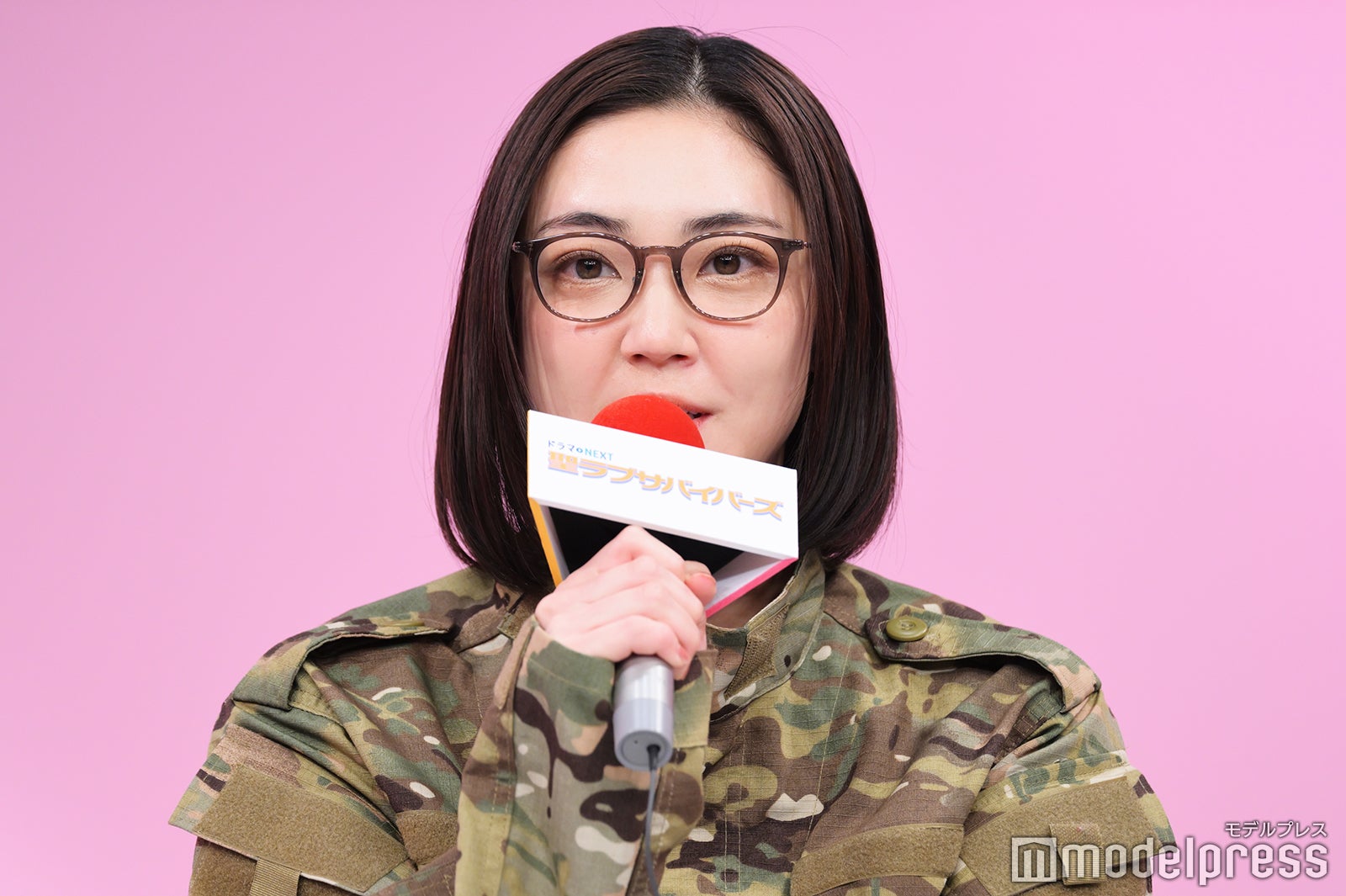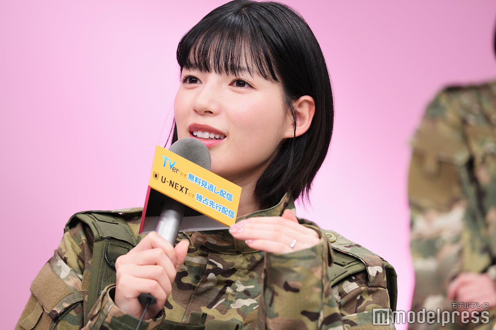 迷彩服を着用して登場した石井は「私にとってこの作品は、すごく挑戦的な役柄でした。なので、この挑戦が多くの人の勇気になったり、悩みを抱える人の背中を押すことができるようにと思いながら演じました」と笑顔。出演が決まった時の心境を尋ねられると「原作を読ませていただいて。ストレートな悩みをポップに描いている、すごく魅力的な作品で。ハルちゃんという主人公が一喜一憂しながら、いろんなことに向き合いながら、突き進んでいる姿にすごく惹かれたので、この役を演じたい・挑戦したいと思いました。原作が35歳設定なんですけど、今回は30歳に変更して撮影させていただいたんですけど、一喜一憂していくハルちゃんの少女らしさと、悩みに触れたときの大人っぽさとのギャップをどう演じようかっていうのをたくさん考えながら、役作りしていました」と振り返った。役作りでベースの練習も重ねたという上田は「最初にお話を聞かせていただいたときに、新鮮だなと思って。自分がこういう役をやるのは。割と今までは、悪党みたいな役どころが多かったんですよ(笑)。俺こういうのあるんだと思って、まず新鮮・面白そうだなと思ったのが1つ」と回想。そして「王子っていう役もそうなんですけど、小説を読めないんですよ。文字を読めないんですよ。俺も読めないんですよ(笑)。なかなかこうやって台本を渡されたときに、パッて1回で見るのは難しいんですけど、今回はどんどんどんどん続きが気になっちゃって。それぐらい引き込まれたので、とにかく(撮影を)楽しみにしていました」と明かした。