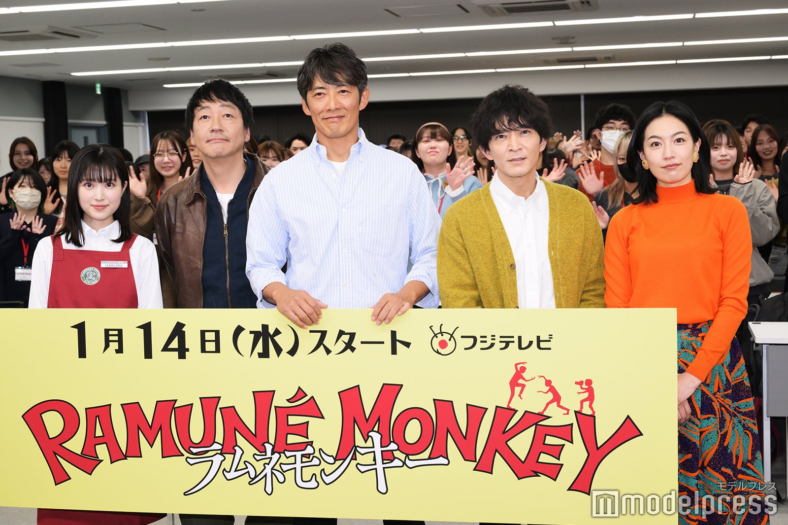 俳優の反町隆史、大森南朋、津田健次郎、女優の福本莉子が13日、都内で開催された1月期新水10ドラマ「ラムネモンキー」(※初回15分拡大 毎週水曜22時~22時54分)制作発表会に出席。反町と福本の意外な共通点が明らかとなった。