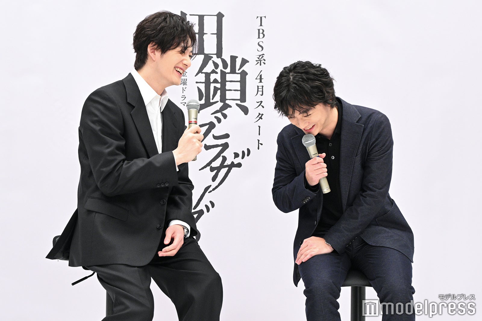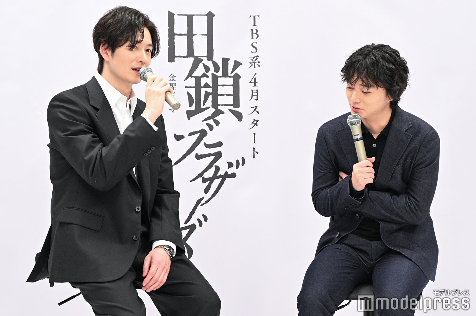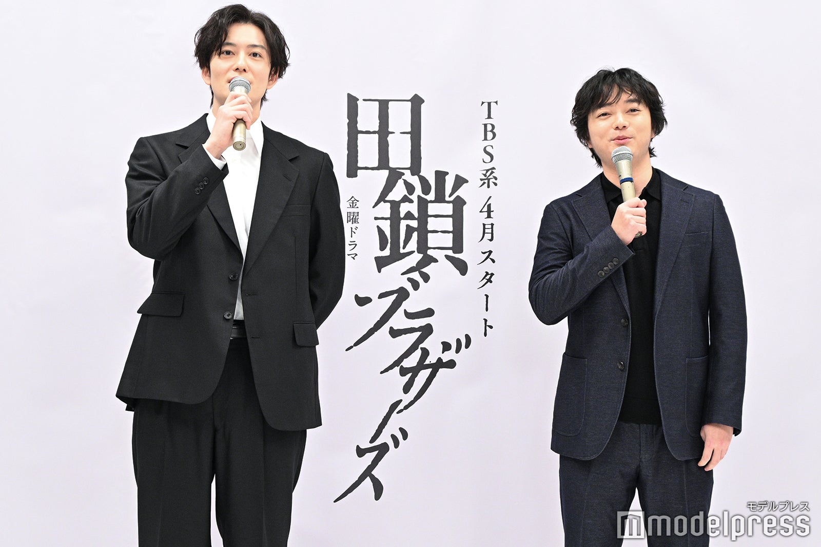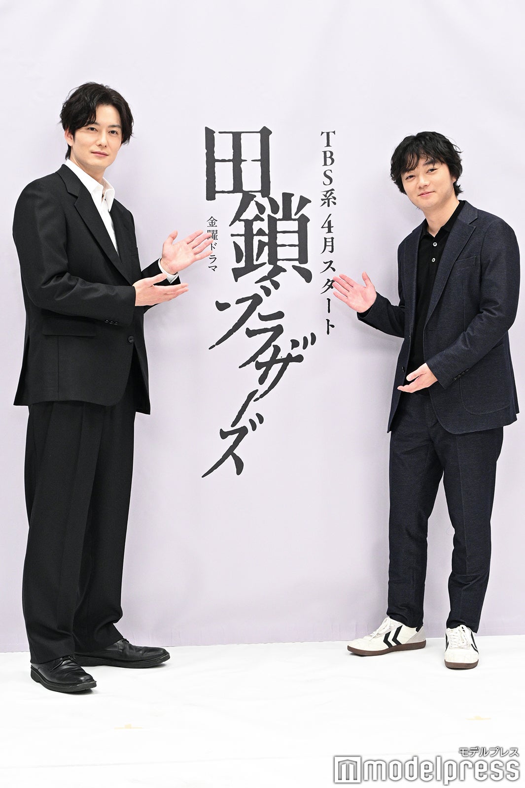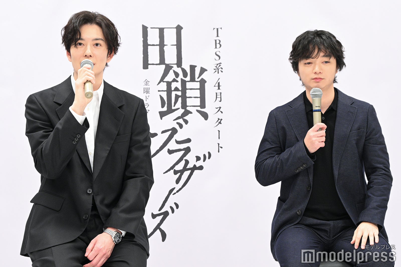 俳優の岡田将生と染谷将太が、このほど行われたTBS系4月期金曜ドラマ「田鎖ブラザーズ」制作発表会見に出席。共演の経緯を明かした。