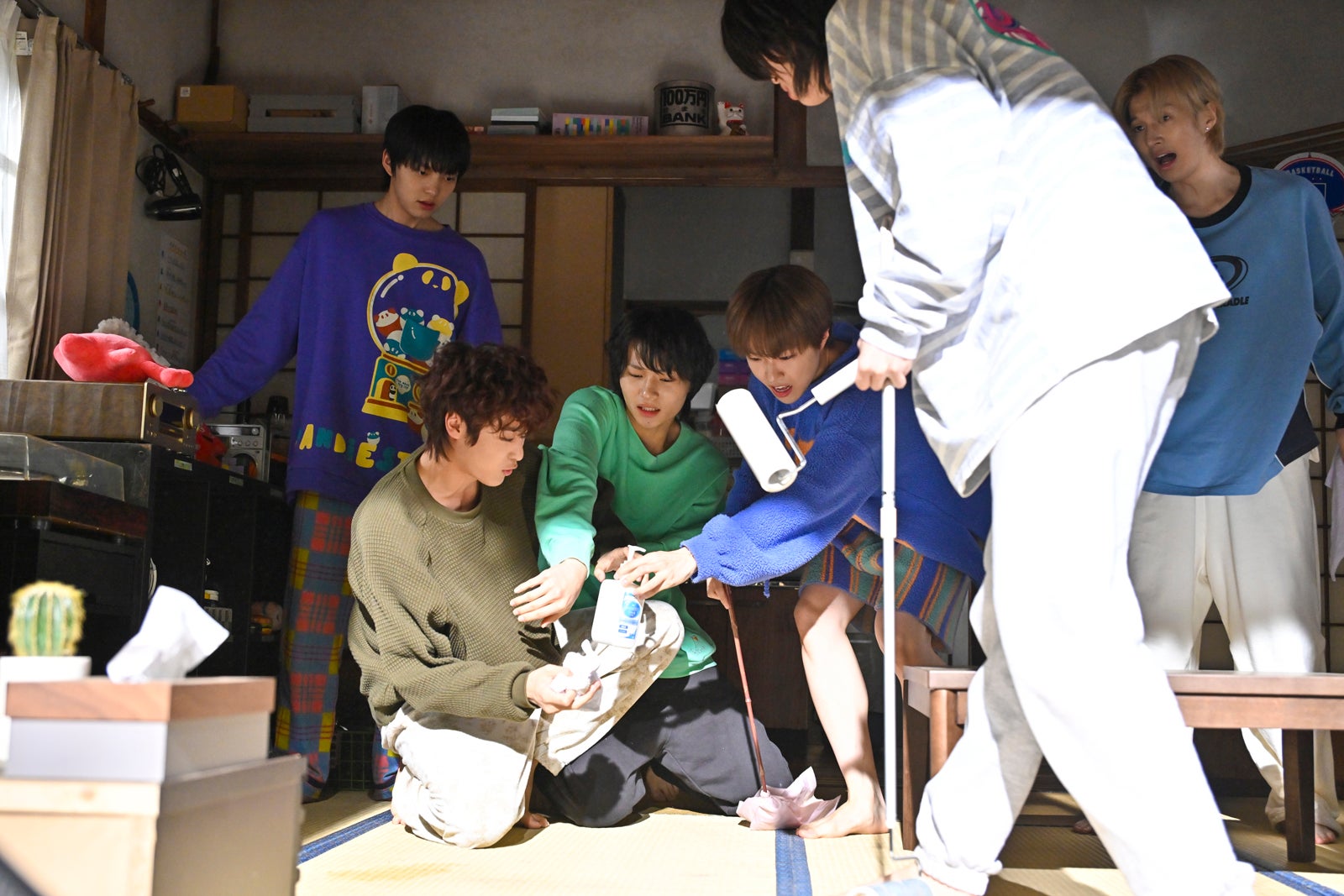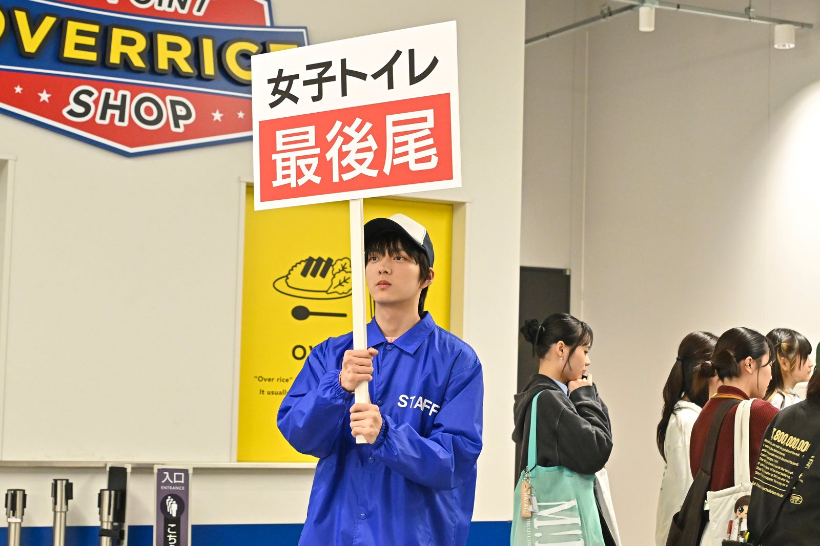 NAZEが出られるライブイベントを見つけるため、必死で飛び込み営業に挑むマネージャーの遠藤水星(池田エライザ)だったが、連戦連敗。レコード会社に勤める同級生・レイナ(渋谷凪咲)を頼るが、回ってくる仕事はライブ会場の裏方、ビラ配りなどだった。NAZEがスタッフとして入ったライブ会場で、アトとキムゴンが食事を届けた楽屋には「遅いよ~お腹すいた」と駄々をこねるアーティスト役の佐野勇斗(M!LK)の姿が。実際のグループ衣装に身を包んでおり、会場自体も「M!LK CONCERT TOUR 2025 “M!X”」仕様で、M!LKのグッズやパネル、旗などが並んでいた。