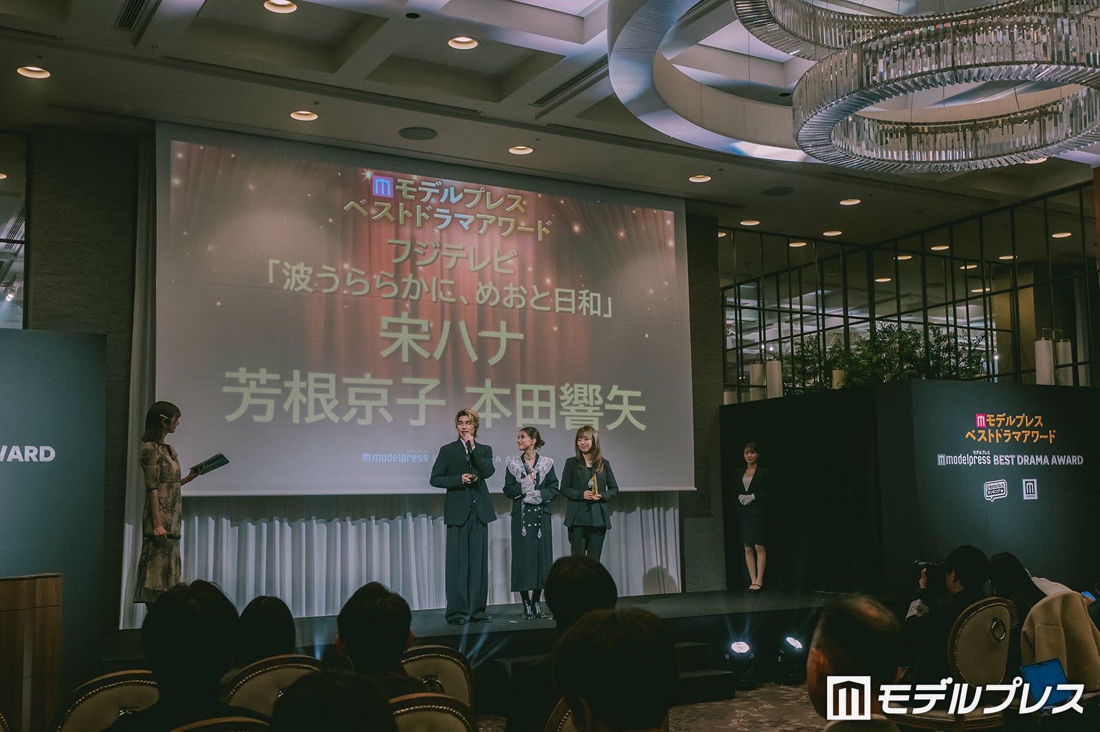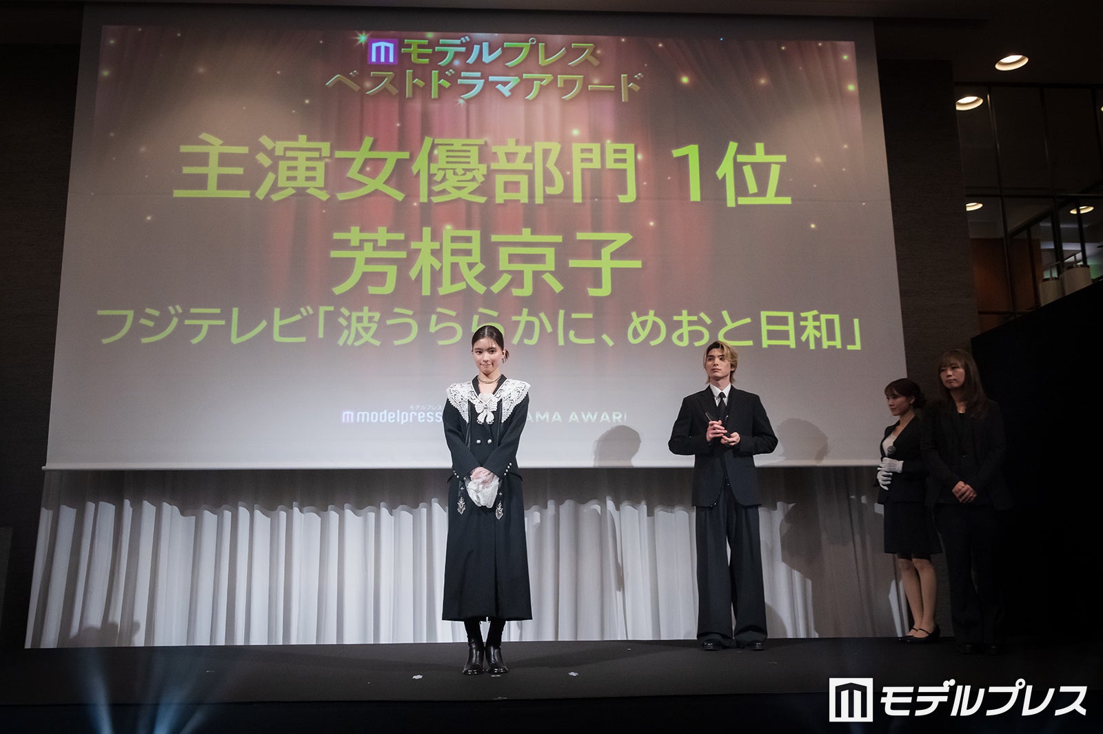 フジテレビ系木曜劇場「波うららかに、めおと日和」で主演を務めた女優の芳根京子、共演の本田響矢、宋ハナプロデューサーが18日、都内で行われた「モデルプレスベストドラマアワード」授賞式に登壇。再会の喜びを語った。