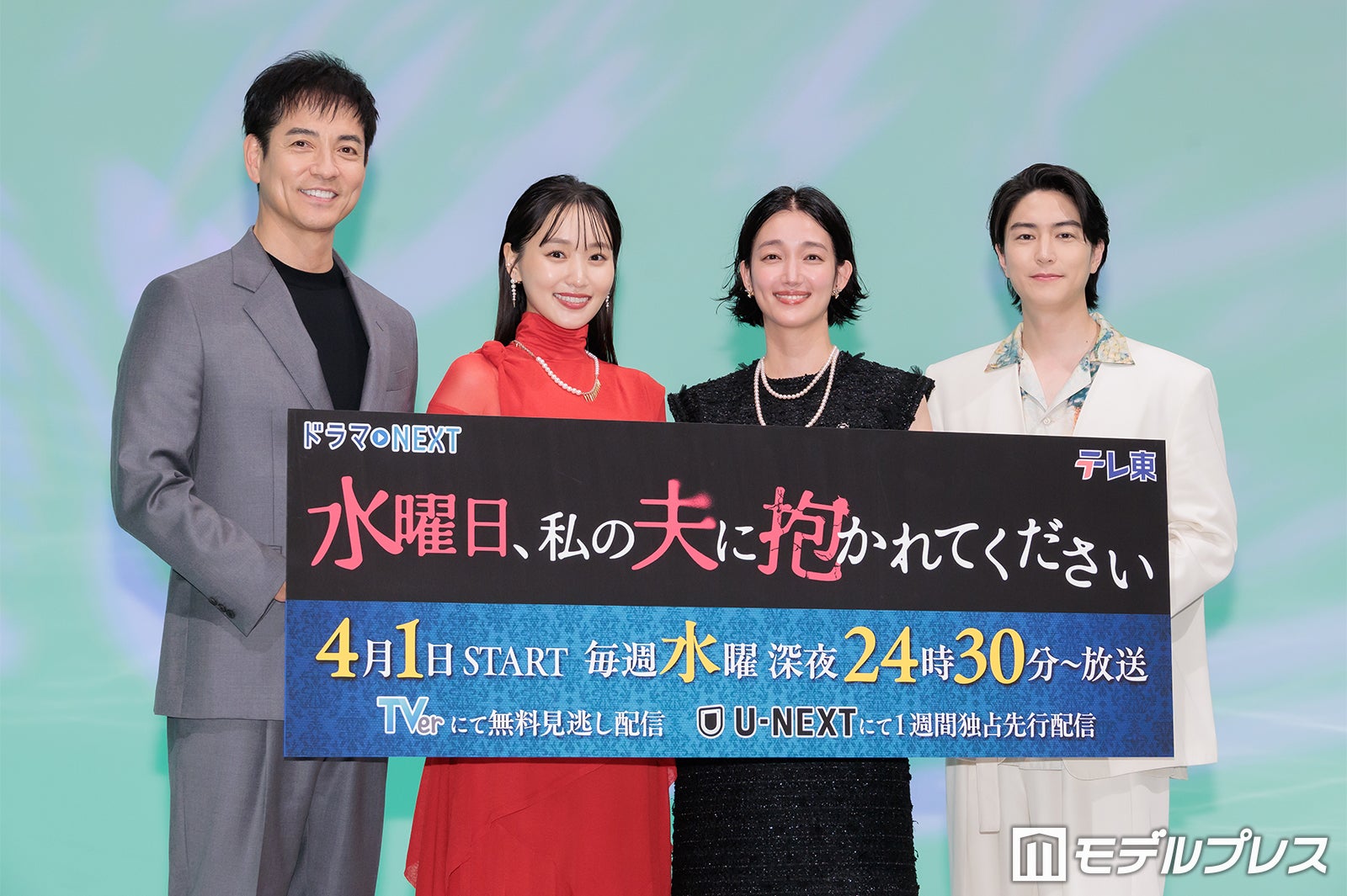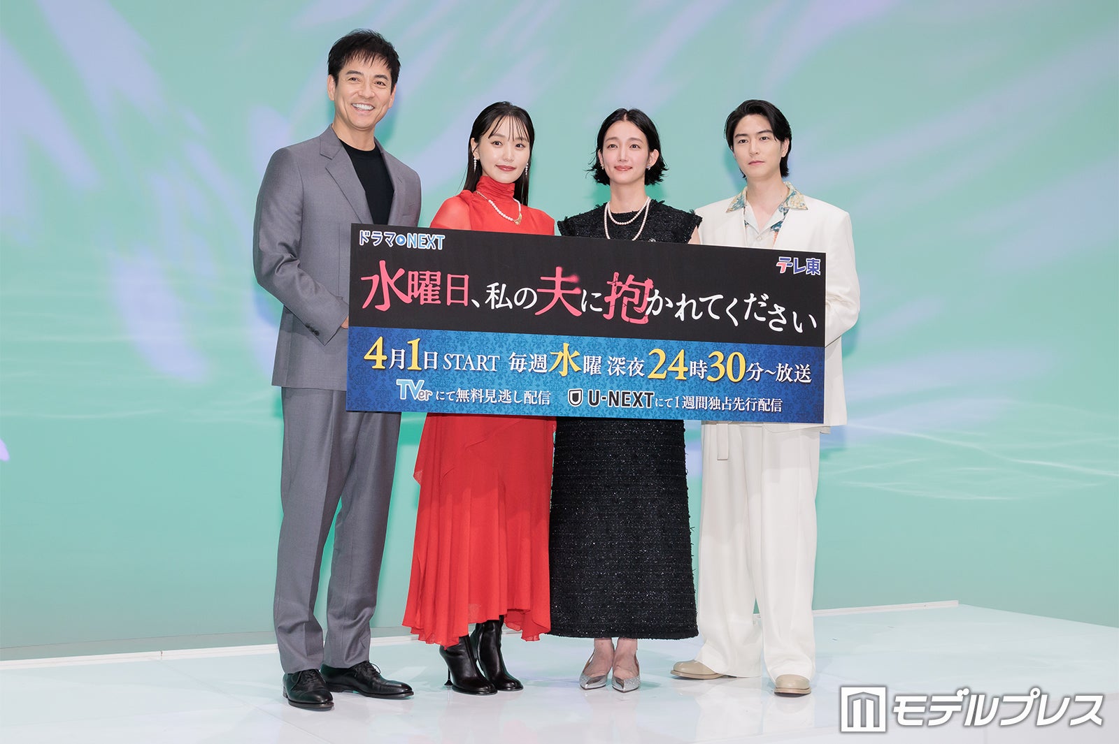 女優の菅井友香と沢村一樹が3月31日、都内で開催されたドラマNEXT「水曜日、私の夫に抱かれてください」記者会見に入山法子、稲葉友、山本夕月とともに出席。チーフ監督を務める沢村が出演者を絶賛する場面があった。