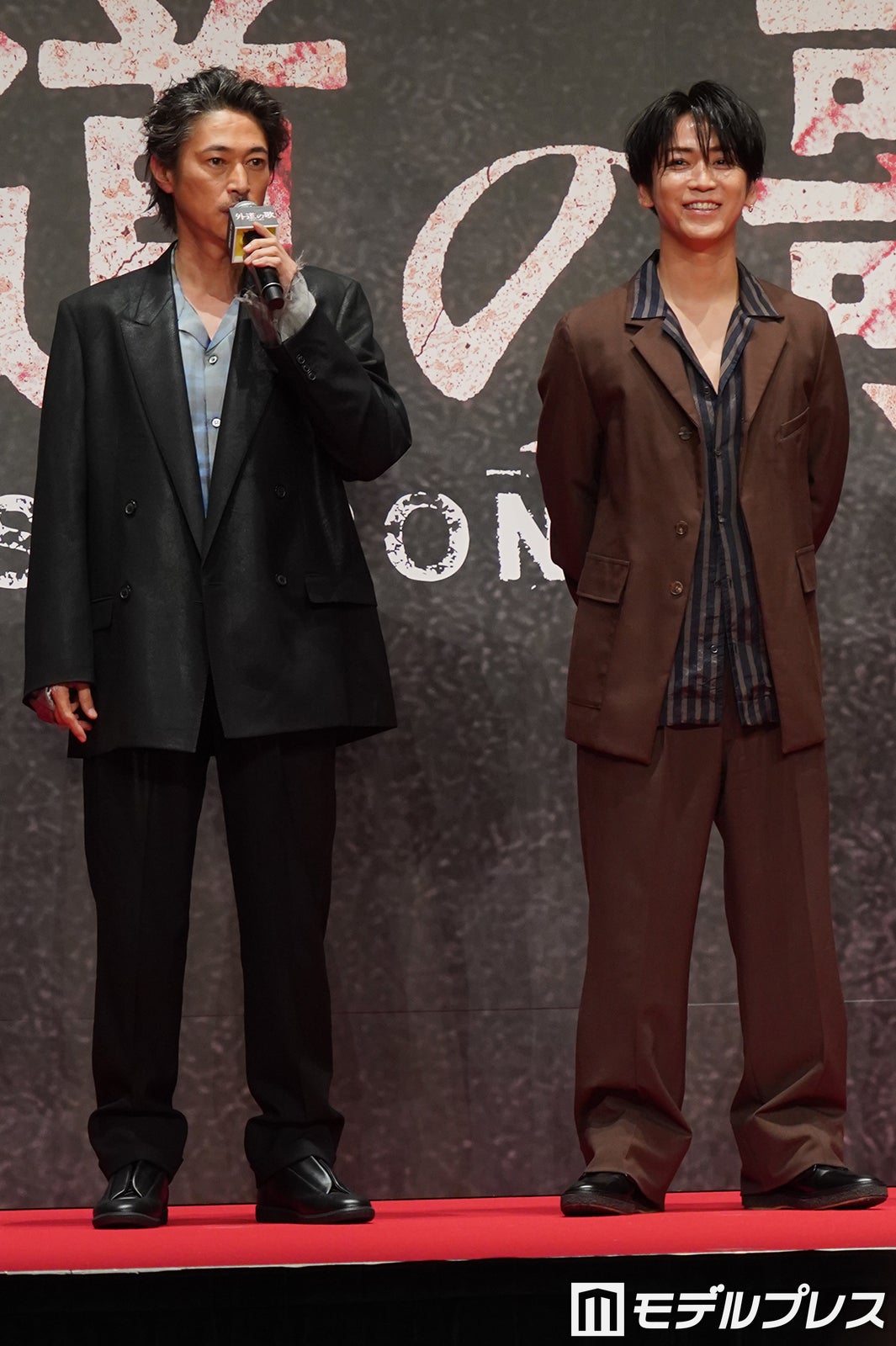 アクションシーンも見どころとなっている同作。窪塚は「溝端くんもアクションができて、亀ちゃんもできるんで」といい「途中で早回ししたみたいに見えるぐらいの手の速さだったんで、すごいな」と溝端と亀梨のアクションシーンに感動したエピソードを披露。溝端は「亀梨さんがリアクションが上手すぎて、現場で『本当に当たっているんじゃないか』ってスタッフさんがヒヤヒヤするくらいでした。僕は絶対当ててないんですけど、みんなが『溝端、亀梨くん殴ったんじゃないか』みたいな空気になるぐらいめちゃくちゃ上手かったんですよ」と亀梨のアクションに脱帽の様子だった。窪塚が「あれ?でも、『一発は当ててやる』とか言ってなかった?」とイジり始めると、溝端は「言ってないです」と大慌てで否定。しかし、亀梨が、帰宅し入浴のために服を脱いだら胸に「ハートマークのアザがついてた」と乗っかり、会場は笑いの渦に包まれた。(modelpress編集部)