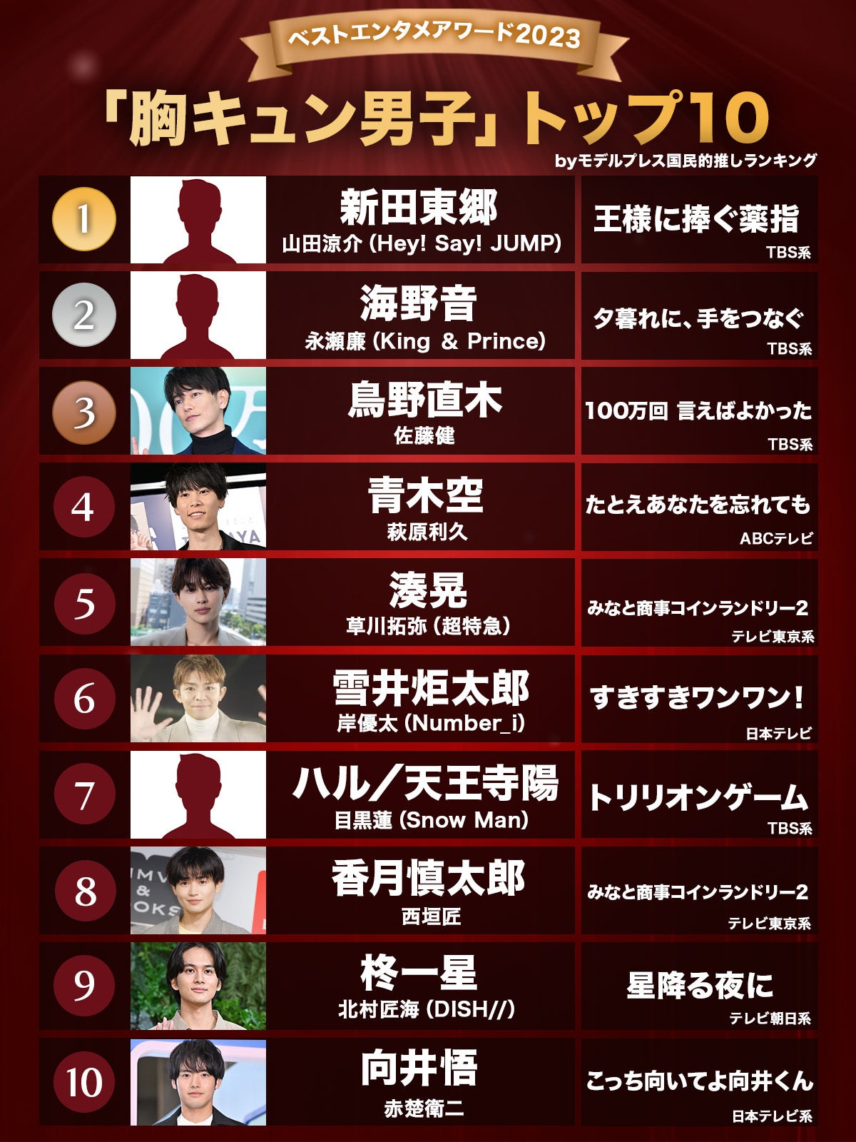 モデルプレス読者が選ぶ「2023年の“ベスト胸キュン男子”」トップ10を発表【ベストエンタメアワード2023】モデルプレス -