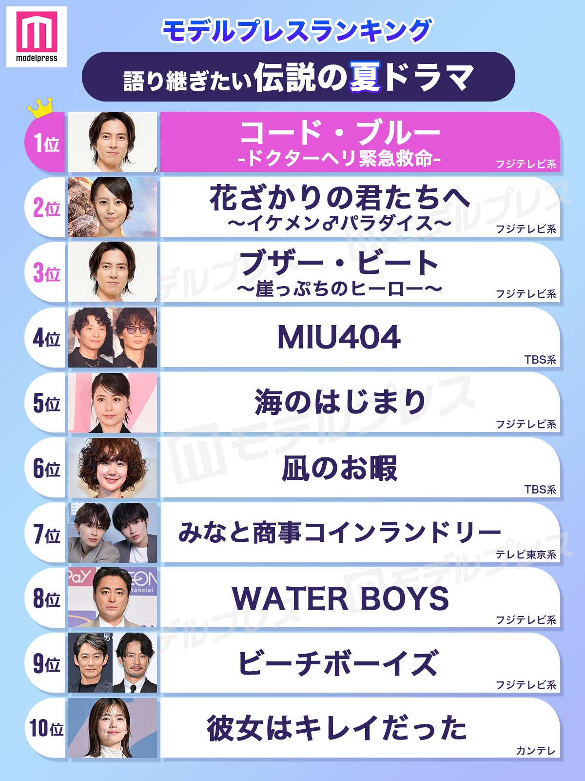 読者が選ぶ「語り継ぎたい伝説の夏ドラマ」トップ10を発表【モデルプレスランキング】モデルプレス -