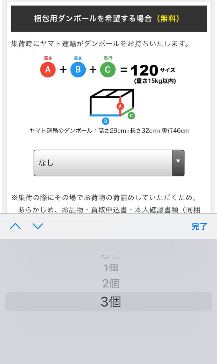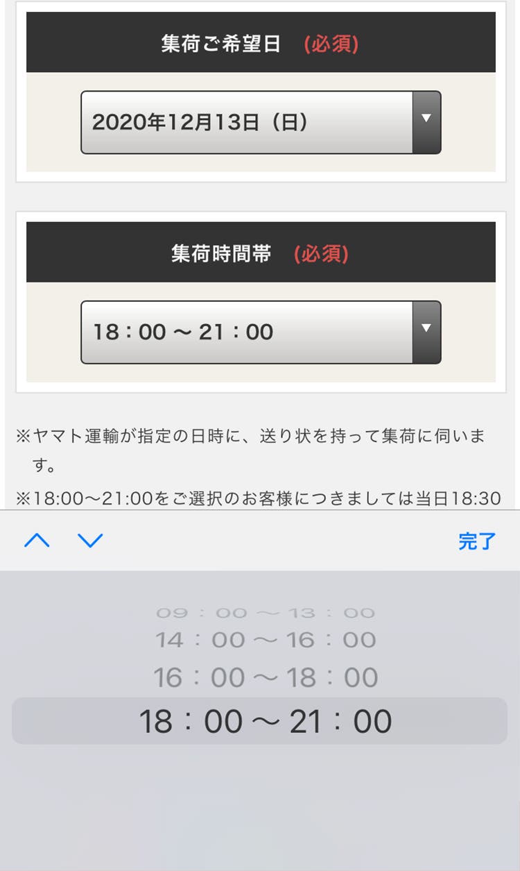 あとは集荷に来てもらう日時、氏名や住所などの個人情報を入力。これで申し込みは完了です!集荷は指定した日時に来てくれますし、送料無料なのも嬉しいポイントです。