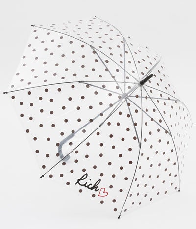 「blondy」のオリジナル傘は、星が降ってきているようなキュートなプリントがポイント。「rich」は、大人かわいいドット柄がクラシカルで上品な仕上がりだ。