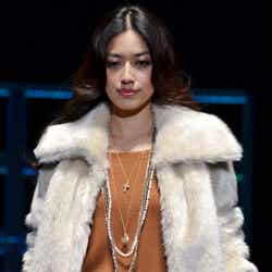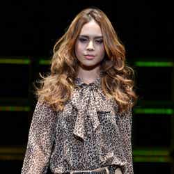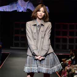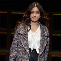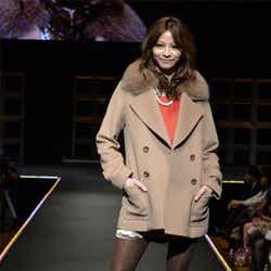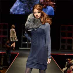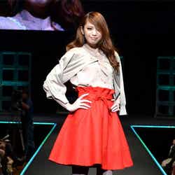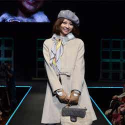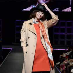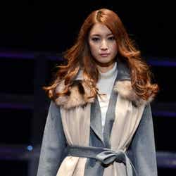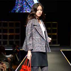 人気ブランド「LOUNIE(ルーニィ)」ステージのトップバッターを飾ったのは、フジテレビ系月9ドラマ「私が恋愛できない理由」の主演をつとめる香里奈。大きな歓声に包まれながら、真っ赤なワンピースにファーティペットというレディライクな着こなしを披露した。