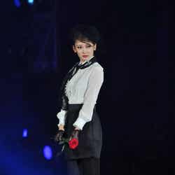 また、ロックバンド「X JAPAN」のYOSHIKIもゲストモデルとして登場。一歩一歩ランウェイを踏みしめるようにウォーキングし、真っ赤な薔薇を客席にプレゼントすると、悲鳴にも似た歓声が沸き起こった。