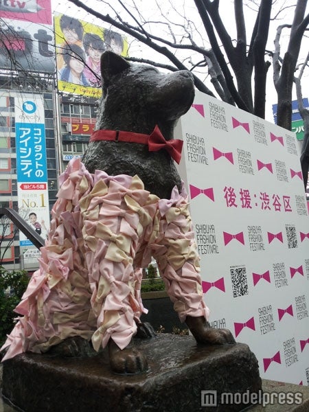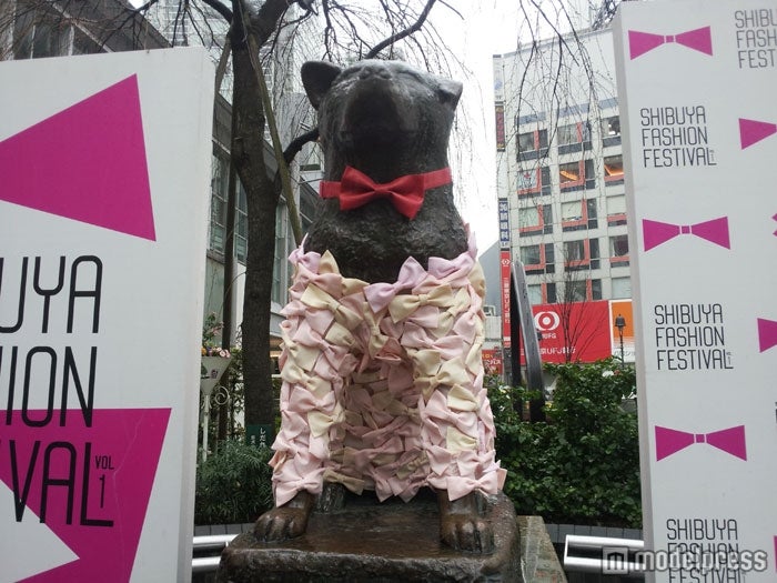 渋谷駅前のハチ公像が23日、渋谷・原宿エリアで開催中のファッションイベント「SHIBUYA FASHION FESTIVAL Vol.1」の一環でドレスアップした。