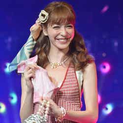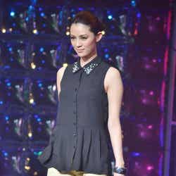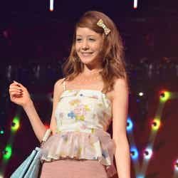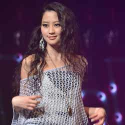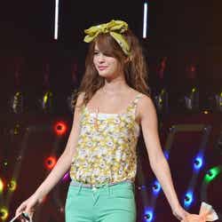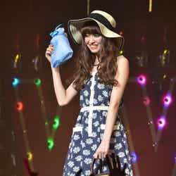 現在、妊娠6カ月の木下優樹菜は、ランウェイ先端でチョリッスポーズ。時にお腹に手を当てながら幸せいっぱいの笑顔を見せていた。