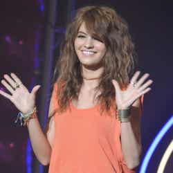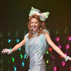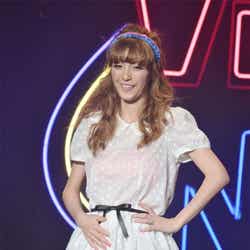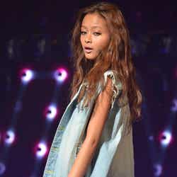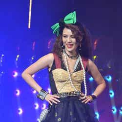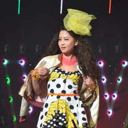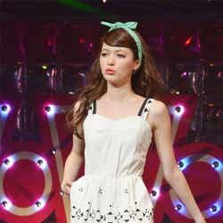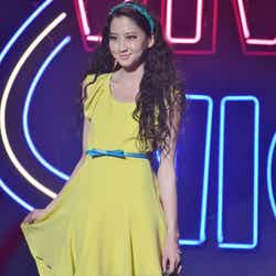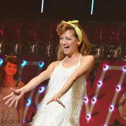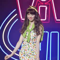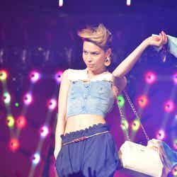 ディスコをイメージした華やかなライティング演出でステージが幕開け。春らしいシャーベットオレンジのミニドレス姿にBIGリボンをつけた藤井リナがトップバッターで登場すると会場から黄色い歓声が起こった。