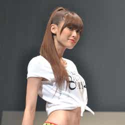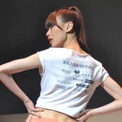 ICONIQは、この日のためだけに作られたというビジューが散りばめられたゴージャスな黒のパンツを主役にしたパンイチスタイルで颯爽とランウェイに登場し、引き締まったセクシー美ヒップをアピール。