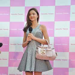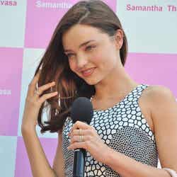 7日に来日したオーストラリア出身モデルのミランダ・カーが9日、東京スカイツリータウンにて「サマンサタバサ」のトークショーに出演した。