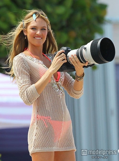 現在、ヴィクトリアズ・シークレットではスイムウェアのカタログ撮影も進んでいるようで、毎日のように撮影風景がパパラッチされているのですが、もう1人の人気モデル、キャンディス・スワンポールは撮影の合間に、カメラマンさんの重そうなカメラを手に、にわかパパラッチに変身!? リラックスムードのなか、撮影は順調そう。