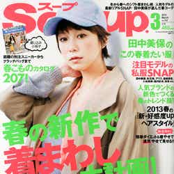 雑誌「Soup.」3月号に、トレンドアイテムを生かした「即スタイルアップできる、やせ見え着こなし術」が紹介されている。