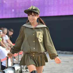 ファッションイベント「GirlsAward」と女性ファッション誌9誌がコラボしたファッションショーの6日目は「Popteen」ステージ。大トリを飾ったくみっきーは、胸元のレースがセクシーなペプラムトップスにフラワー柄のショートパンツ、キャメルカラーのロングブーツで大人可愛く秋を先取り。笑顔を振りまきランウェイをウォーキングすると黄色い声援が会場を包んだ。