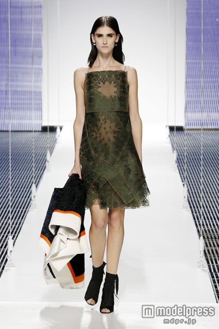 シモンズ氏は今回のコレクションについて「パワフルなルックに、遊び心の要素を加えたかったのです。自由な要素をルックに表現しました。こうした自由は、アメリカ女性の着こなしにならではのものであり、素晴らしいことです。また、私が手がけるディオールのクリエーションに対して、アメリカの女性からは実に力強くエネルギッシュな反応を感じます。歴史的にもムッシュ・ディオールの作品に対して、アメリカの女性は力強い反応を見せてくれました。いわば互いに思い合う関係であり、その感情をお返ししたいと考えました」と説明している。イーストリバー沿いのブルックリン ネイビーヤードが、今回のショーの舞台。ハドソンリバーと合流するダイナミックな地点にあり、マンハッタン島を象徴する風景が見られる。ミラーやLED照明を用いた会場のインテリアは、浮かんで流れるようなスカーフの動きを反映させたものであり、外の世界と共鳴しながら、その世界を抽象的に描いた。(モデルプレス)
